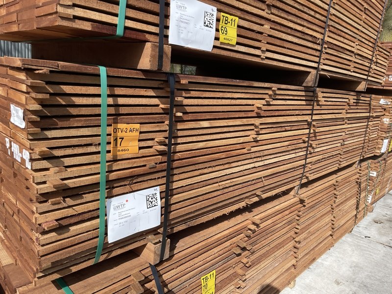 Ca. 132x guyana teak beschoeiingsplanken, 20x150mm, lengte 20/300cm, 112/350cm