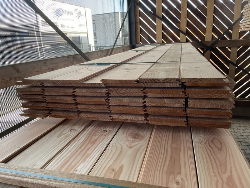 Product: Douglas Veer en Groef Materiaal: Douglas Afmeting: 18x185mm, lengte 400cm Conditie: nieuw