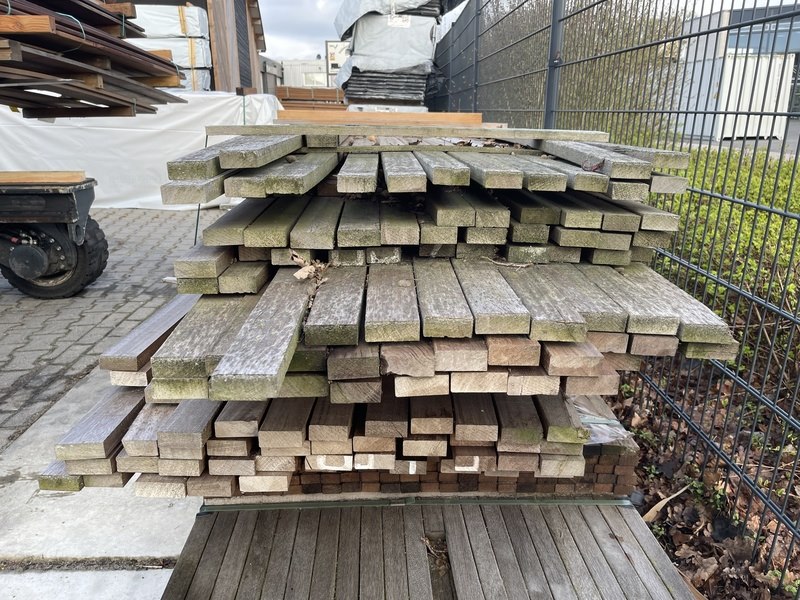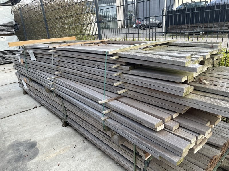 Ca. 177x guyana teak planken geschaafd, 25x70mm, lengte 245-430cm