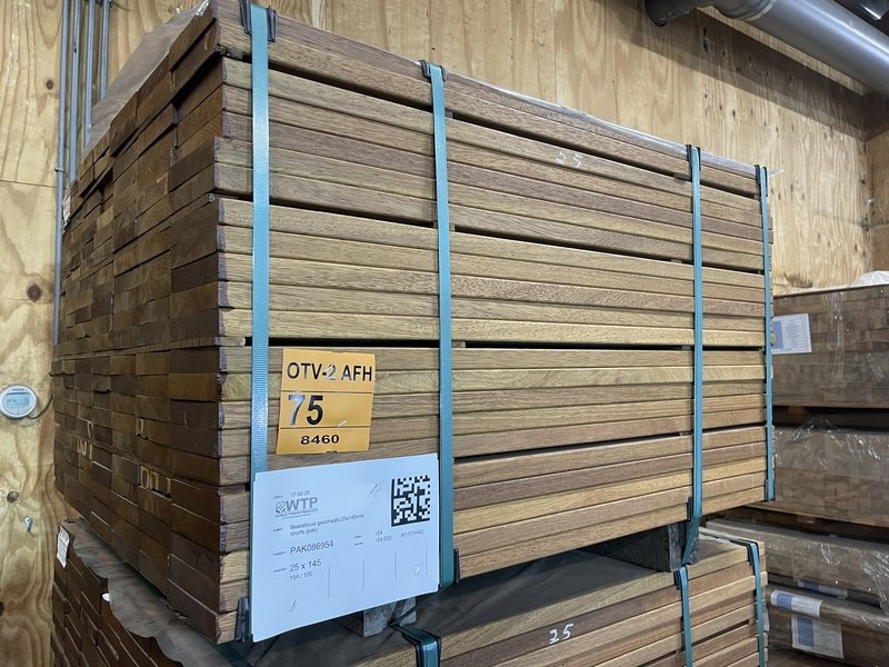 Ca. 154x guyana teak planken geschaafd, 25x145mm, lengte 100cm