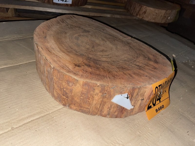 Product: Rosewood Schijf Materiaal: Rosewood Afmeting: Dikte 80mm, Ø 400mm Conditie: nieuw