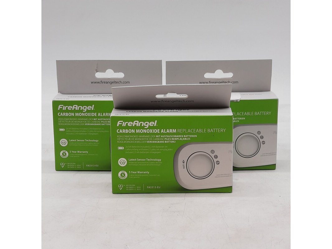 3x rookmelder, fireangel, carbon monoxide alarm