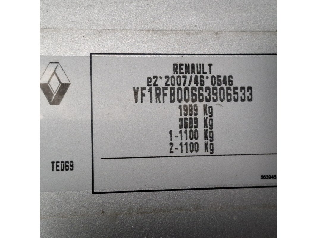 Merk: Renault Product: Personenauto Conditie: gebruikt Specificaties: Kenteken: Niet geregistreerd Eerste toelating nationaal: Niet geregistreerd APK vervaldatum: Niet van toepassing Brandstof: Diesel Transmissie: Handgeschakeld, 6 versnellingen Afgelezen tellerstand: 139.038 Aantal sleutels: 3 VIN nummer: VF1RFB00663906533 Start: Niet getest (zie opmerkingen bij waargenomen gebreken) Opties e.d. Elektrische ramen en spiegels Airconditioning Cruisecontrol Navigatie Radio met display Parkeersensoren Waargenomen gebreken Starten niet getest. Display geeft aan 'Kans op motorschade' Technisch mankement aan versnellingspook (ligt los in auto). Gebruikerssporen en beschadigingen naar leeftijd en/of kilometerstand. Het Certificaat van Overeenstemming (CVO) is aanwezig bij het voertuig.