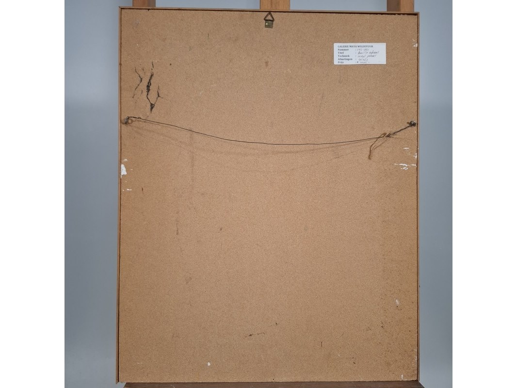 Merk: Maya Wildevuur Product: Acryl schilderij Afmeting: Hxb ca. 63x51 cm Specificaties: Werk beschadigd. Lijst onder ontbreekt.