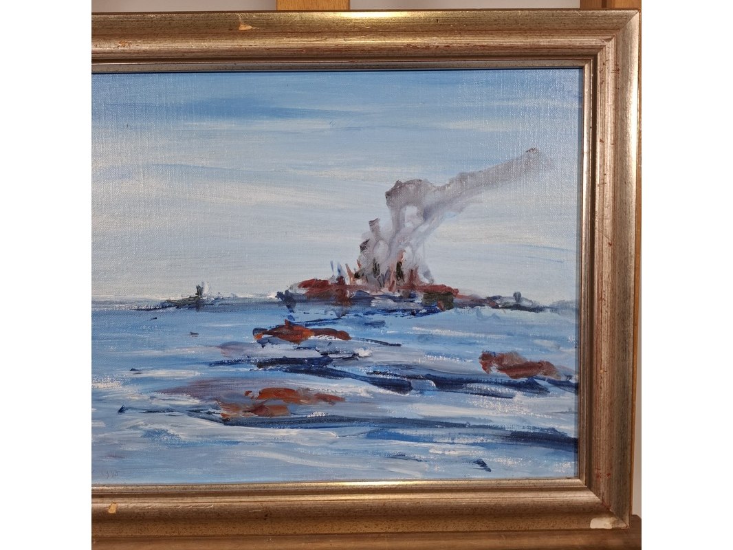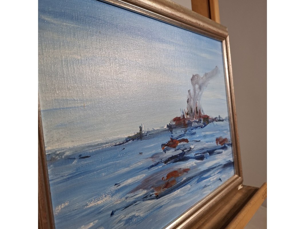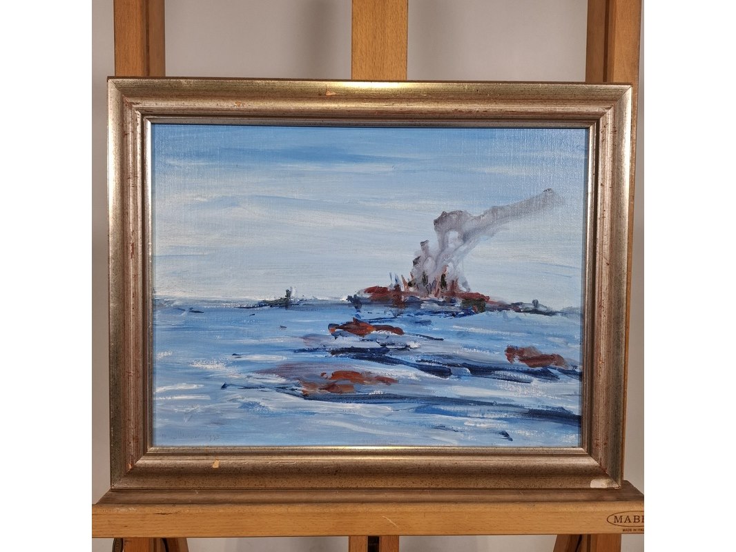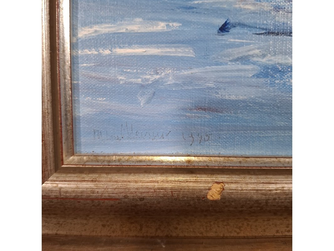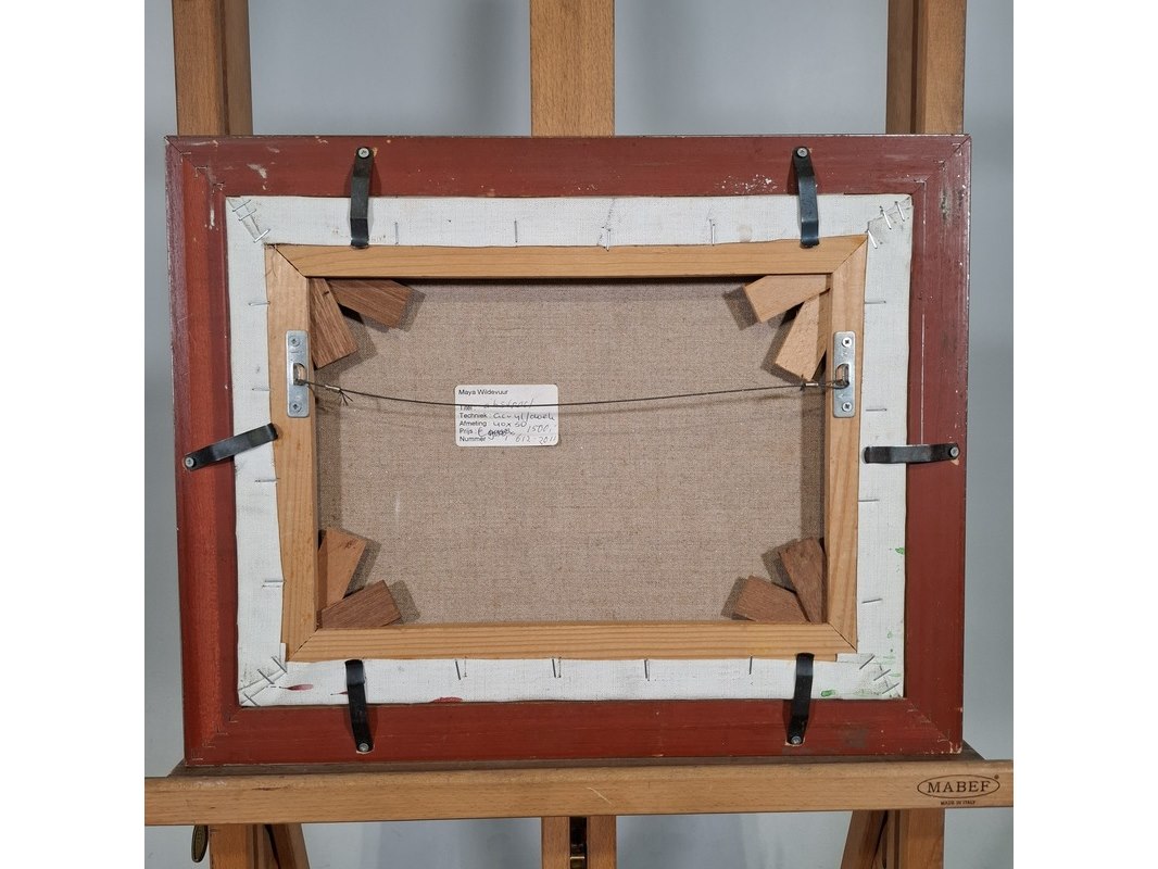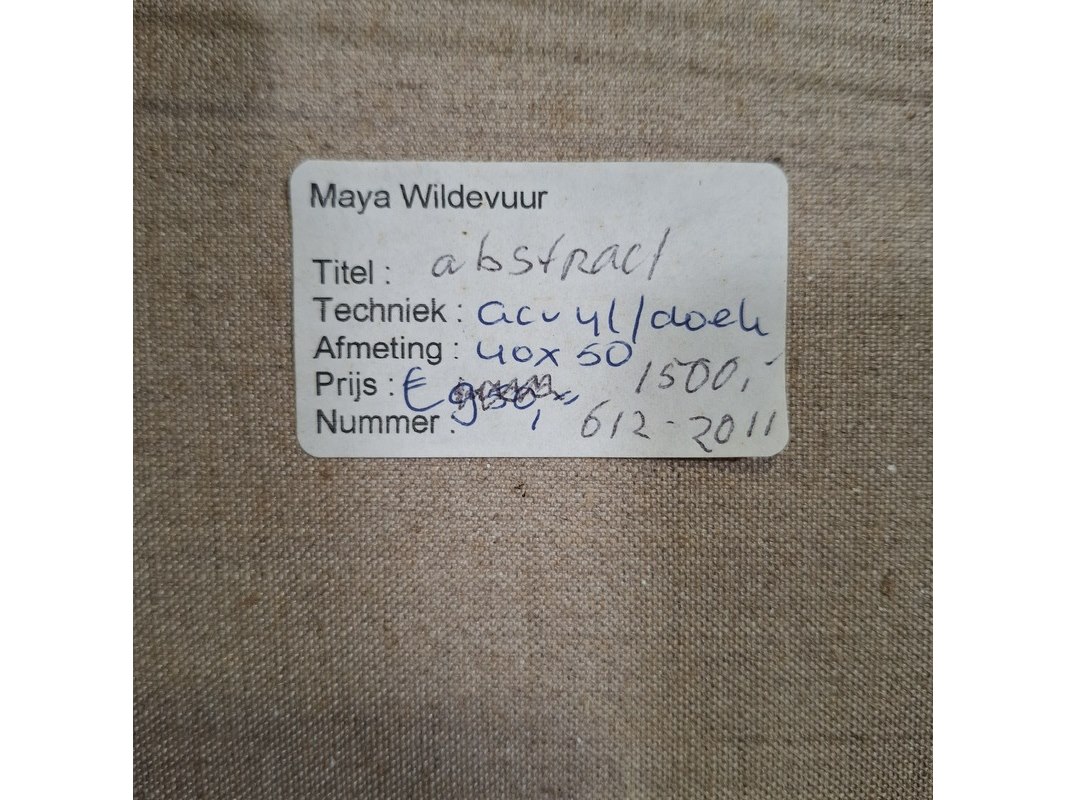 Merk: Maya Wildevuur Product: Acryl schilderij Afmeting: Hxb ca. 38x48 cm BouwJaar: 1995 Specificaties: Lijst beschadigd.