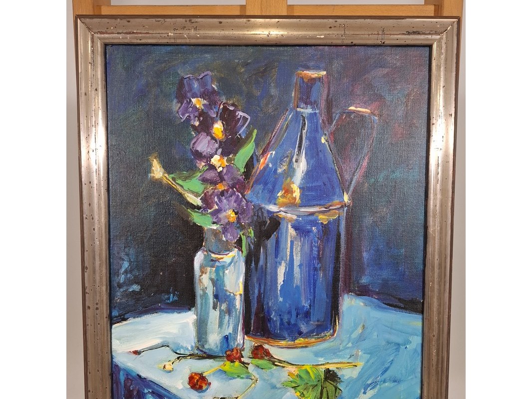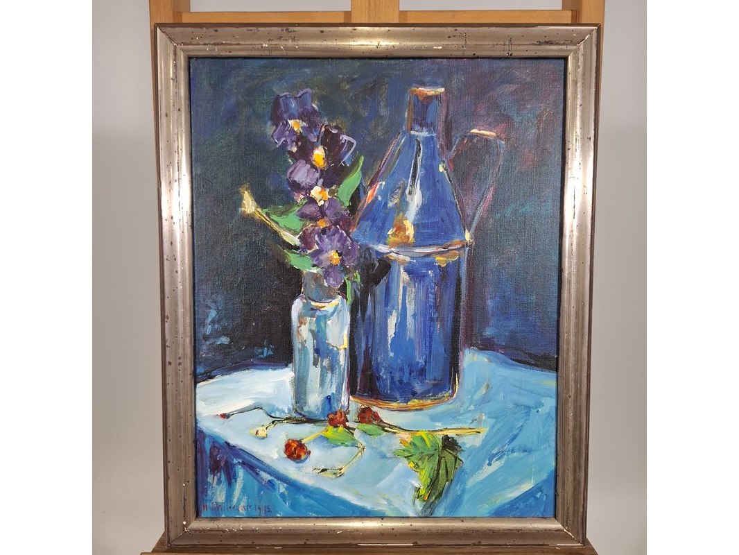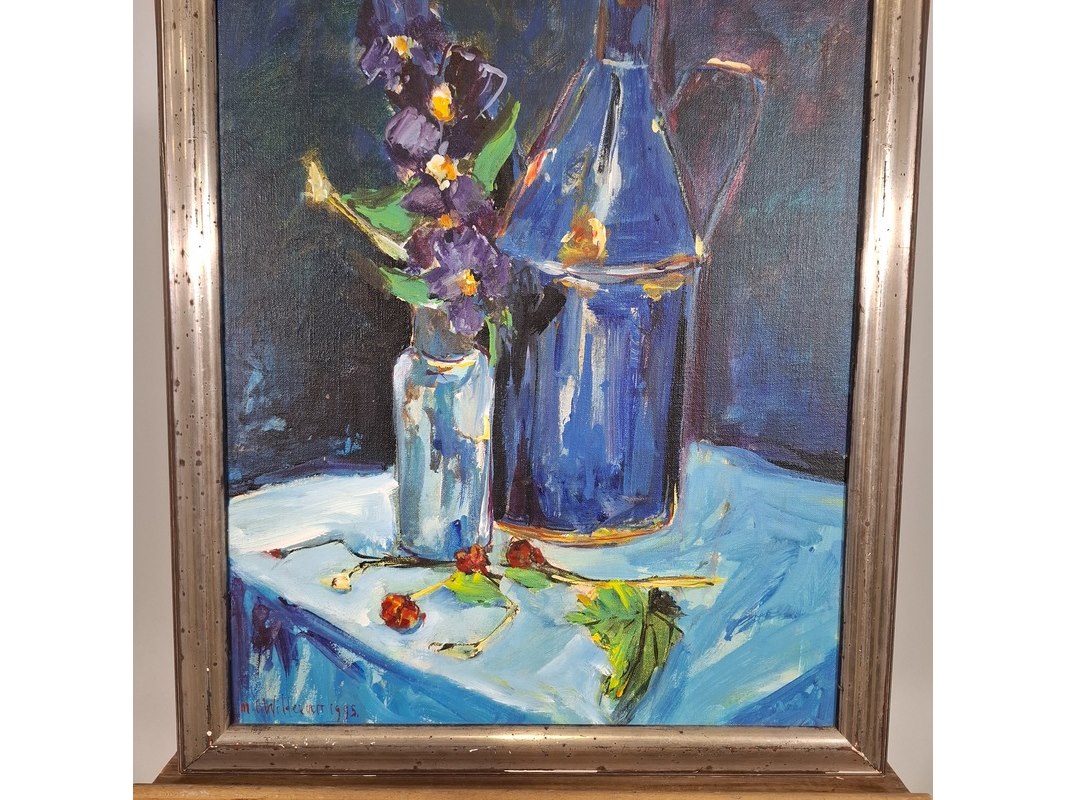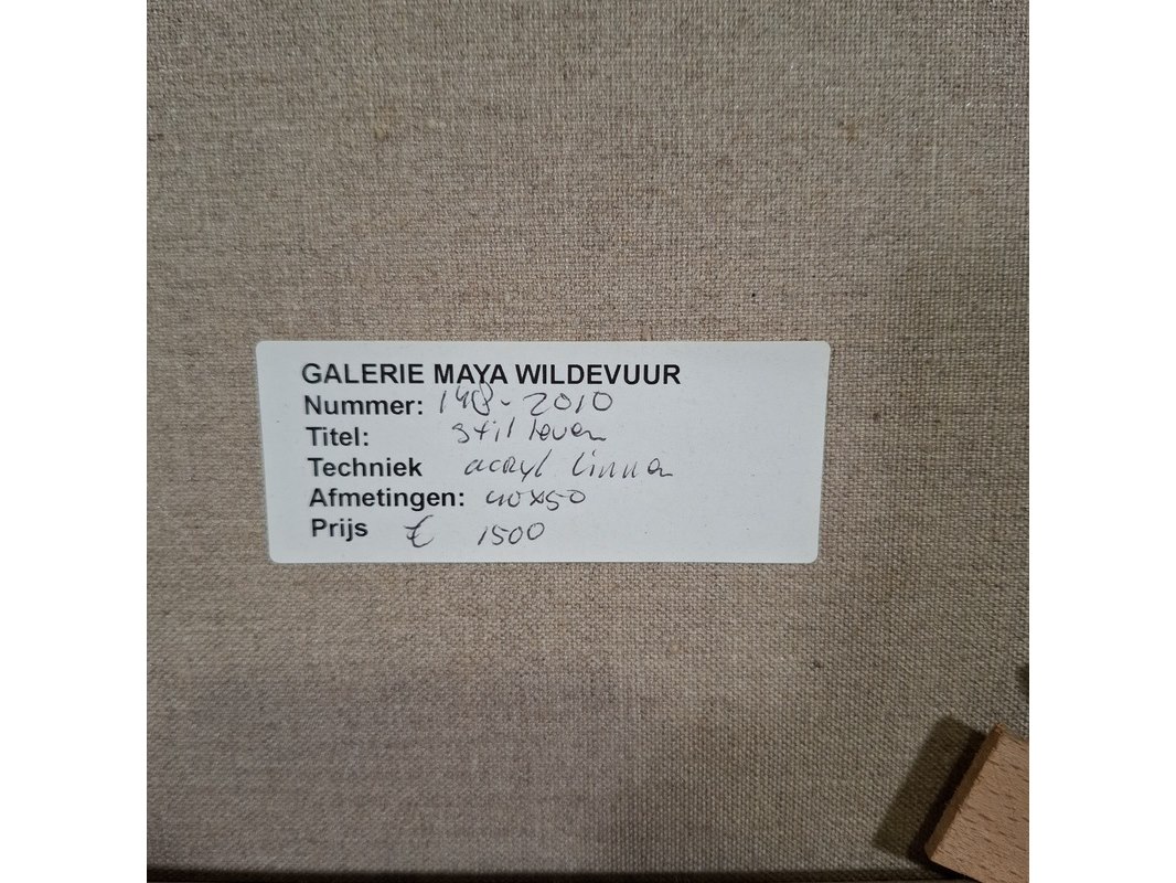 Acryl schilderij, maya wildevuur, stilleven, 1995