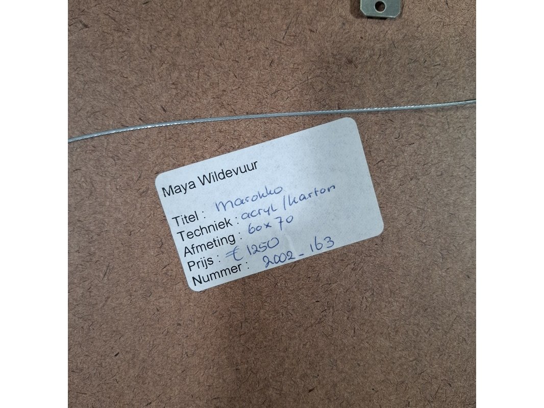Merk: Maya Wildevuur Product: Acryl schilderij Afmeting: Hxb ca. 65x75 cm BouwJaar: 2002