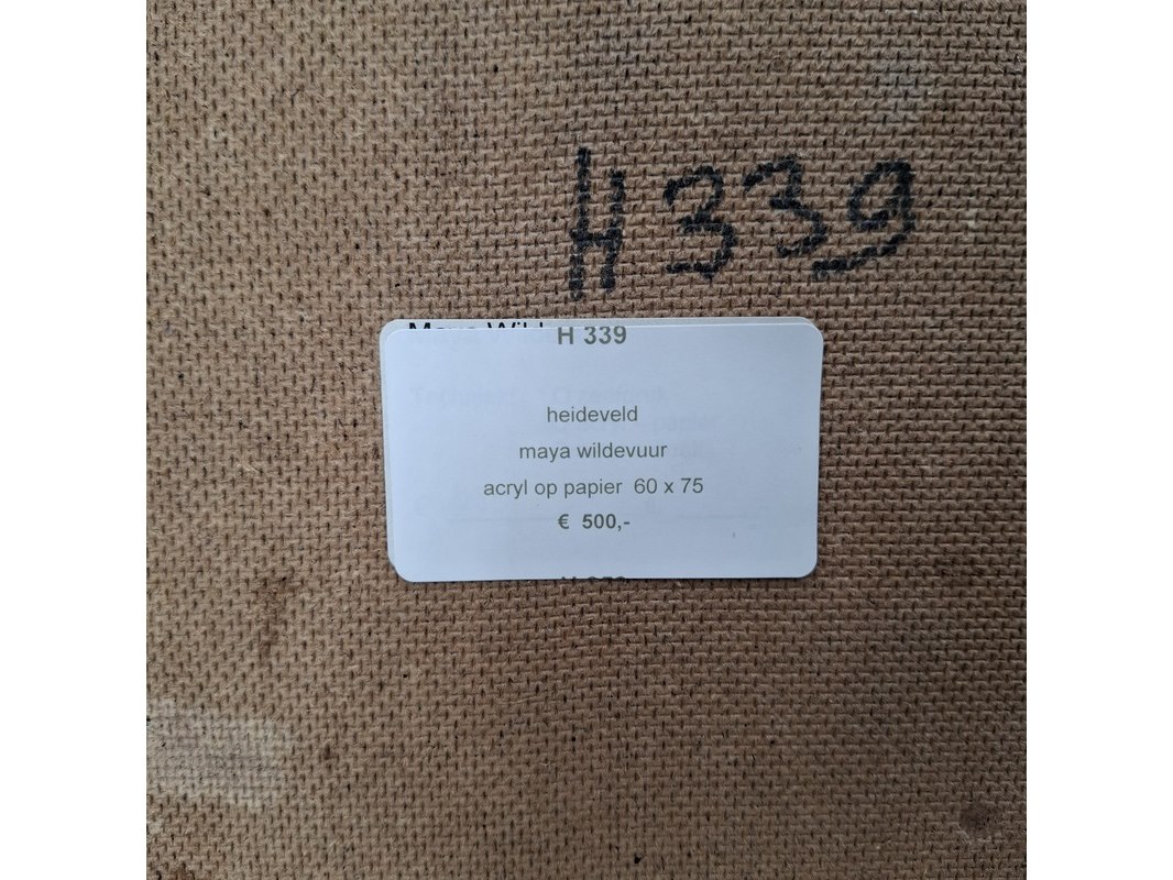Acryl schilderij, maya wildevuur, heideveld, 1990