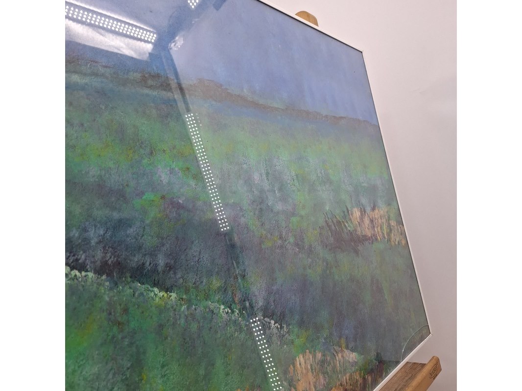 Merk: Maya Wildevuur Product: Acryl schilderij Afmeting: Hxb ca. 65x78 cm BouwJaar: 1990 Specificaties: Glas in lijst gebroken.