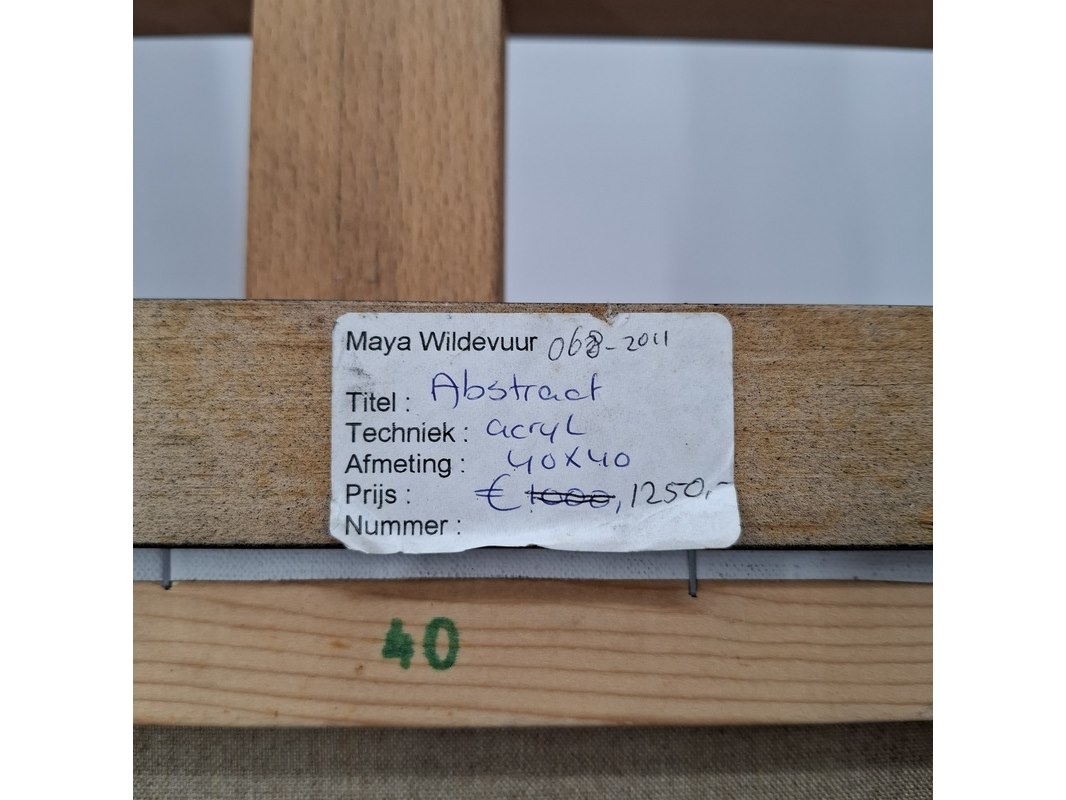 Merk: Maya Wildevuur Product: Acryl schilderij Afmeting: Hxb ca. 46x46 cm BouwJaar: 1998