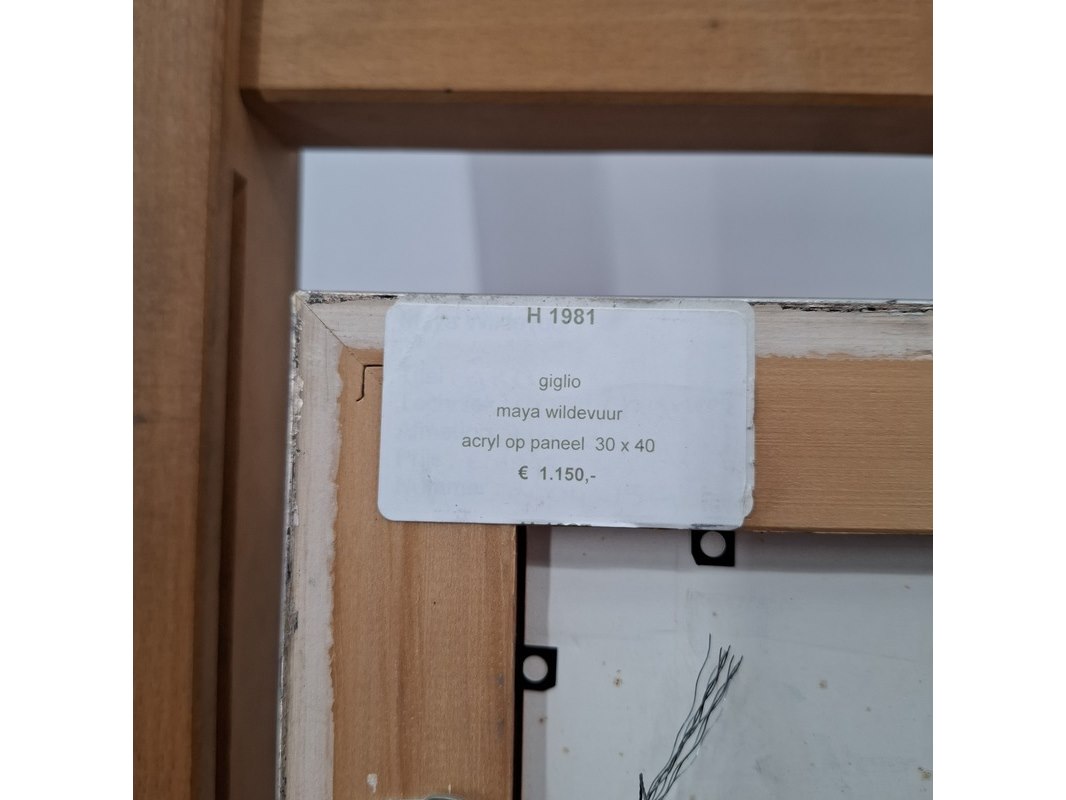 Merk: Maya Wildevuur Product: Acryl schilderij Afmeting: Hxb ca. 49x39 cm BouwJaar: 2004