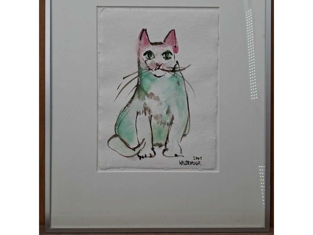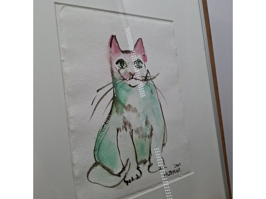 Japanse aquarel, maya wildevuur, poes, 2005