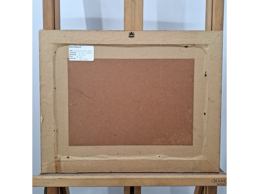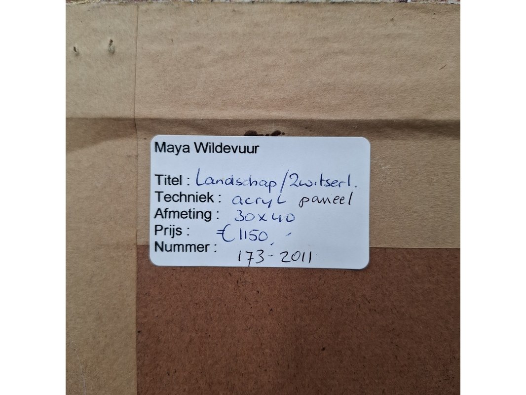 Merk: Maya Wildevuur Product: Acryl schilderij Afmeting: HxB ca. 37x47 cm. BouwJaar: 1993 Conditie: gebruikt