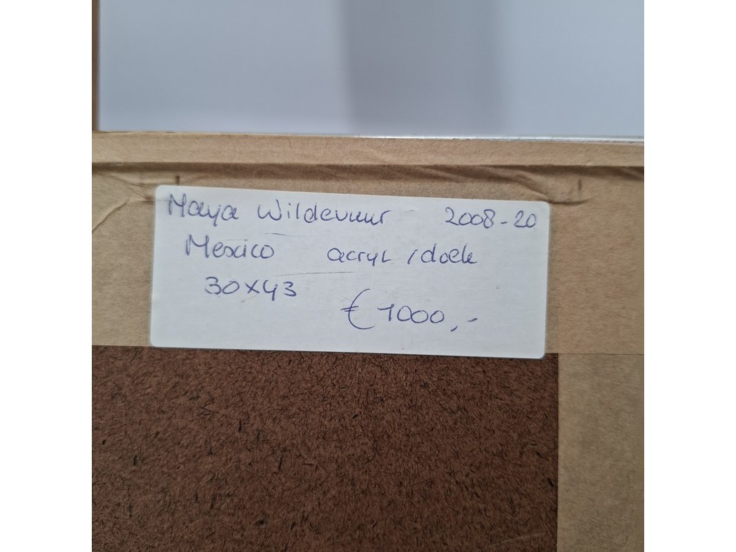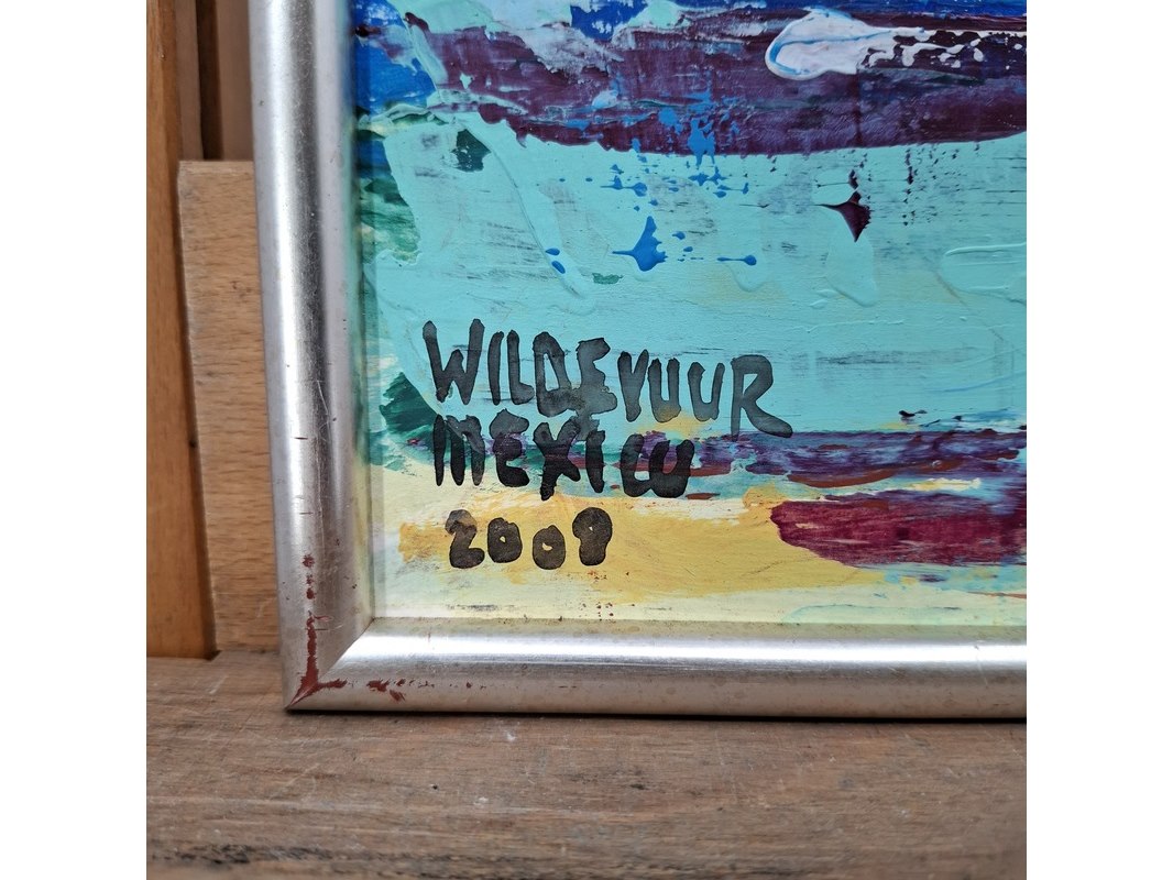 Merk: Maya Wildevuur Product: Acryl schilderij Afmeting: HxB ca. 32x41 cm. BouwJaar: 2008 Conditie: gebruikt