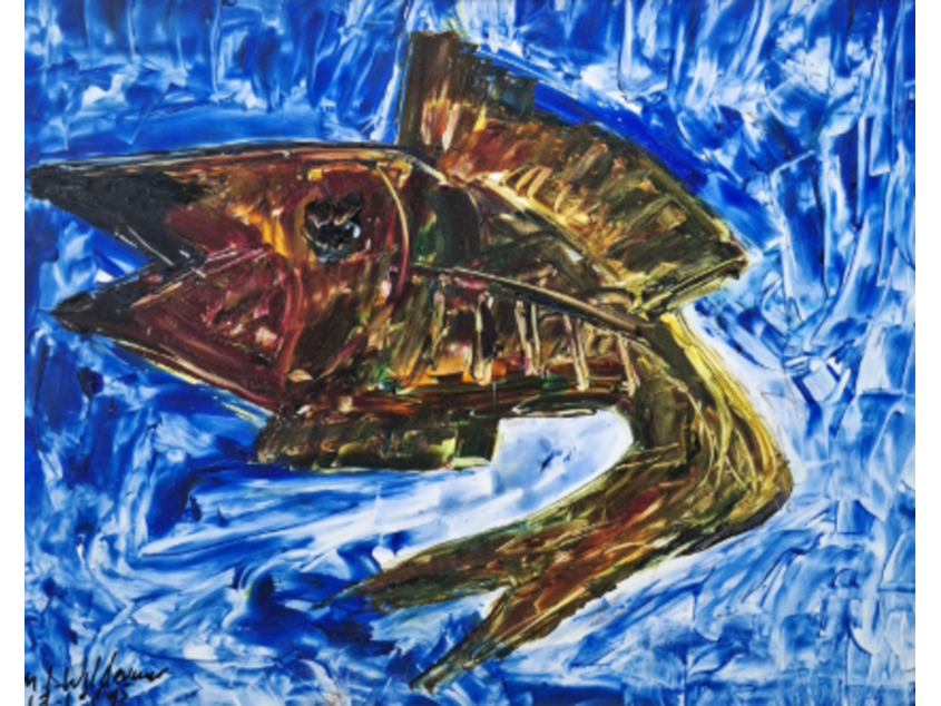 Acryl schilderij, maya wildevuur, vis