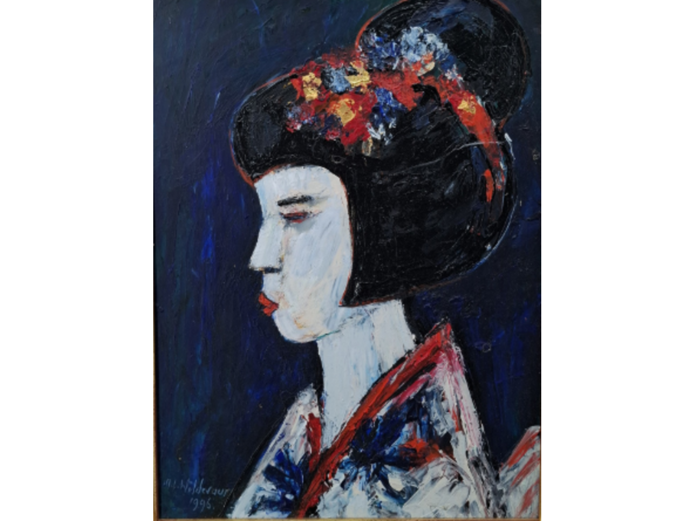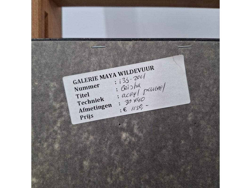 Merk: Maya Wildevuur Product: Acryl schilderij Afmeting: HxB ca. 48,5x38,5 cm. BouwJaar: 1996 Conditie: gebruikt