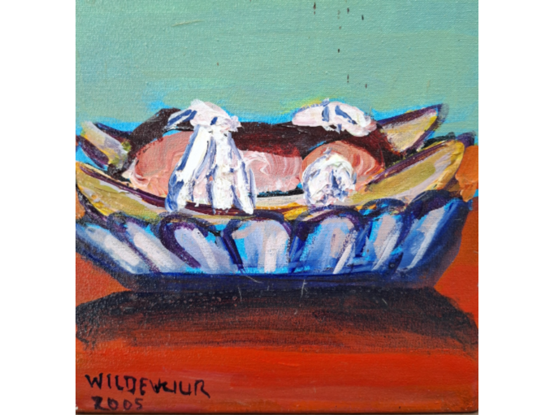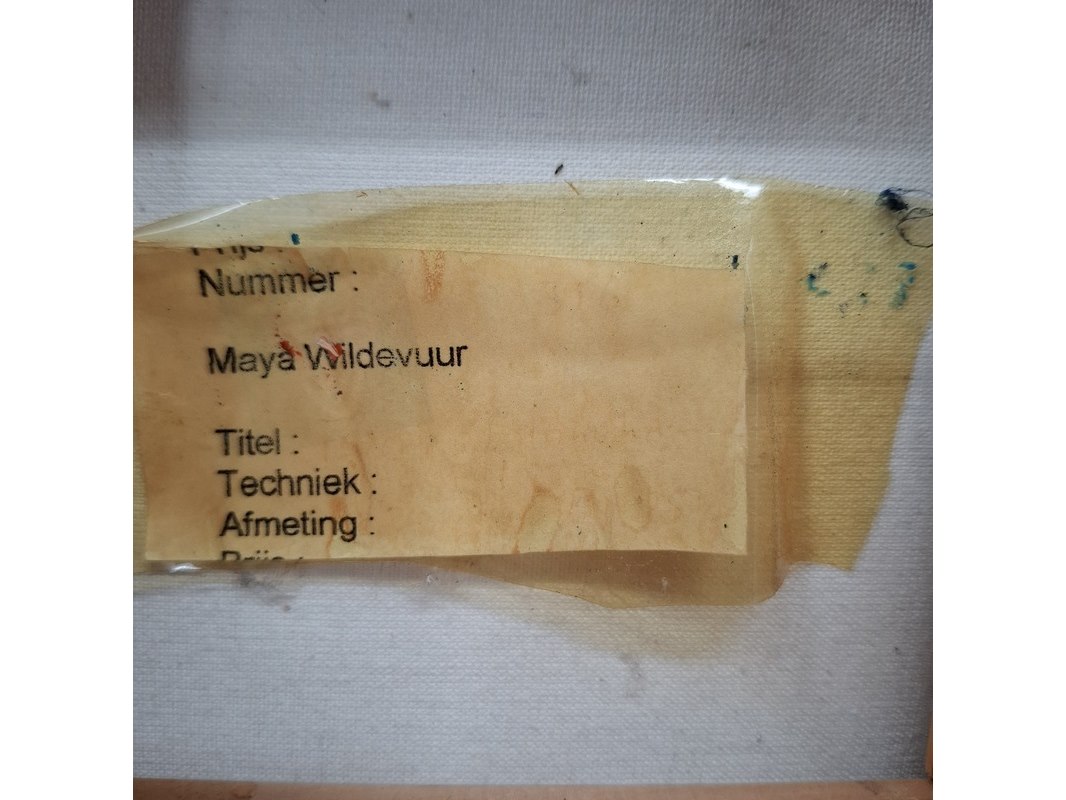 Merk: Maya Wildevuur Product: Schilderij Afmeting: HxB ca. 20x20 cm. BouwJaar: 2005 Conditie: gebruikt