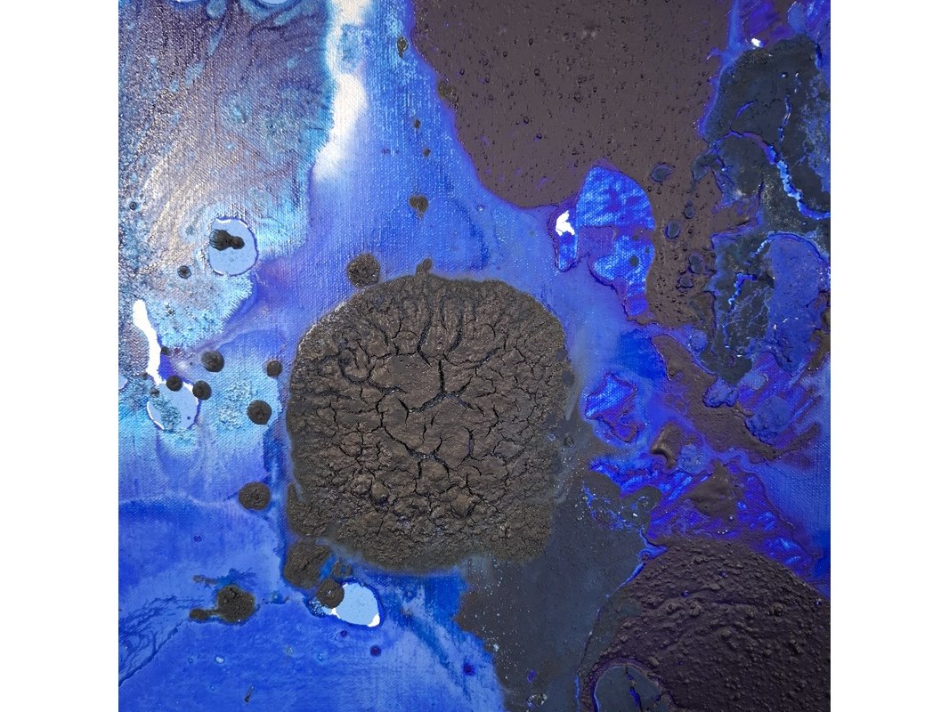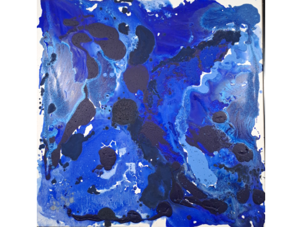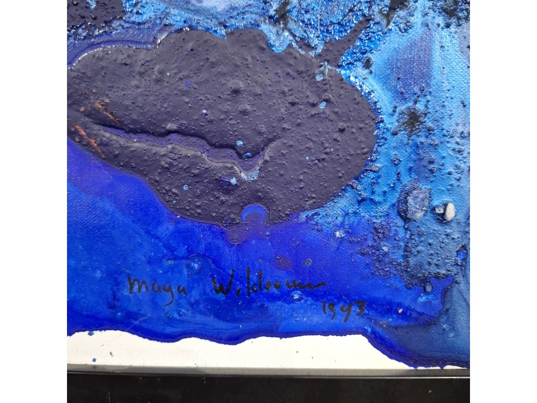 Acryl schilderij op doek, maya wildevuur, compositie blauw, 1993