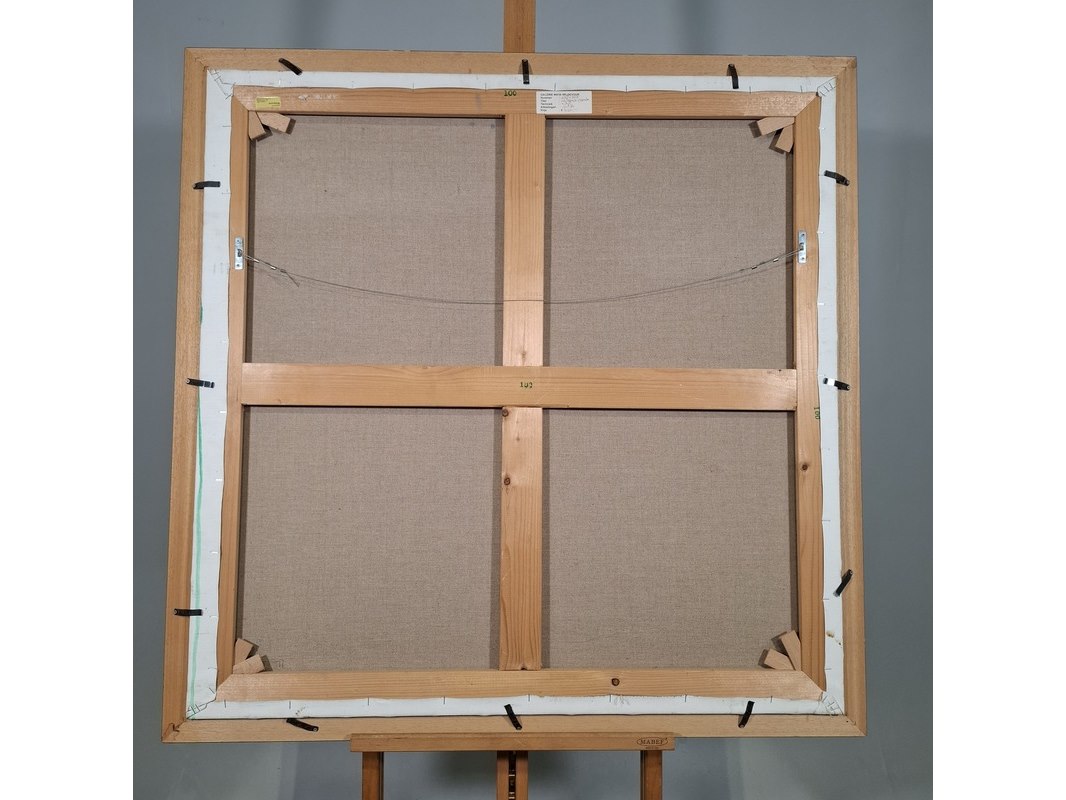 Merk: Maya Wildevuur Product: Acryl schilderij op doek Afmeting: hxb ca. 108x108 cm BouwJaar: 1996