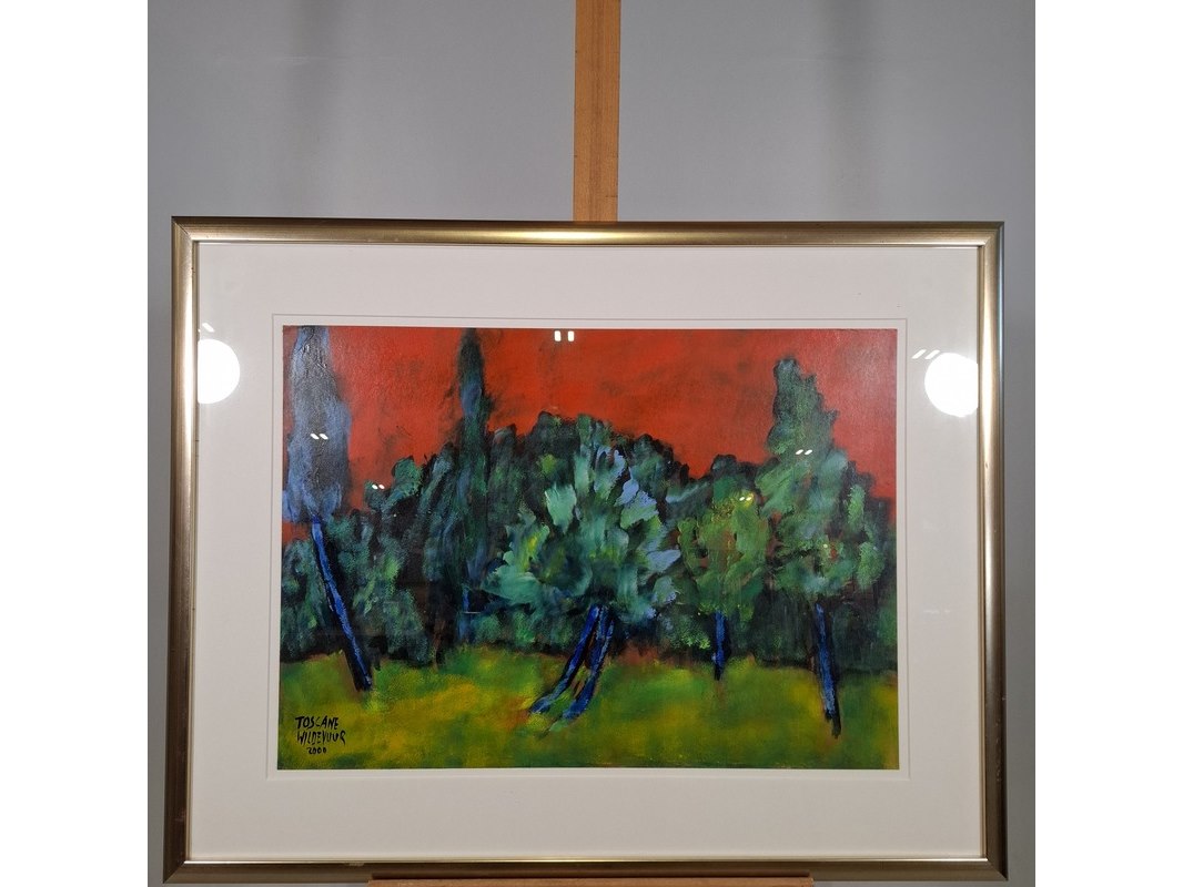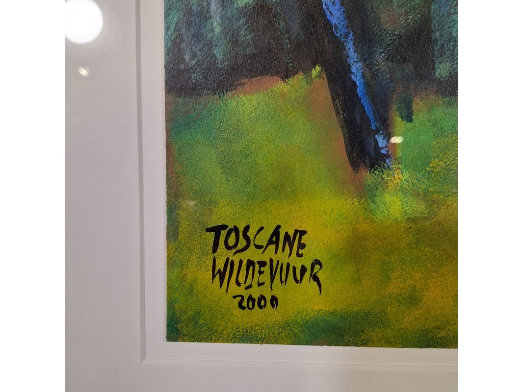 Acryl schilderij op papier, maya wildevuur, toscane, 2000
