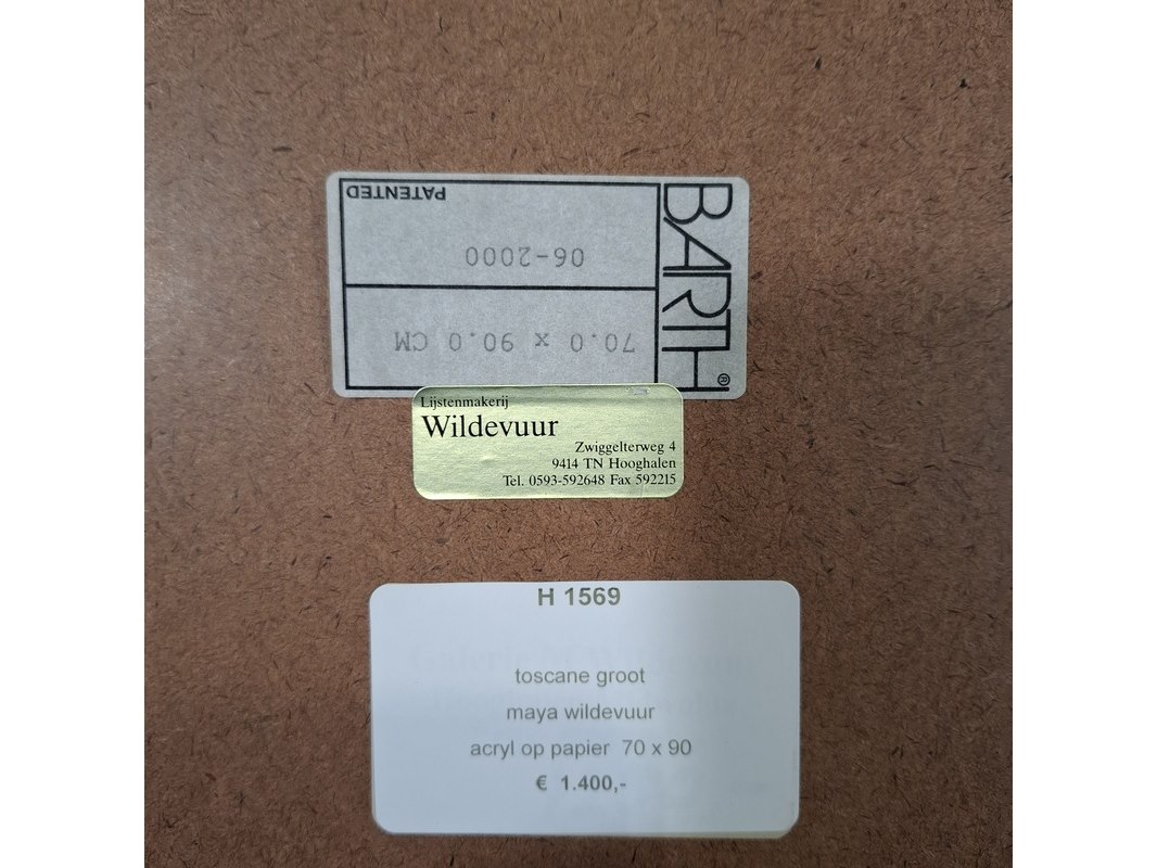 Merk: Maya Wildevuur Product: Acryl schilderij op papier Afmeting: hxb ca. 75x95 cm BouwJaar: 2000