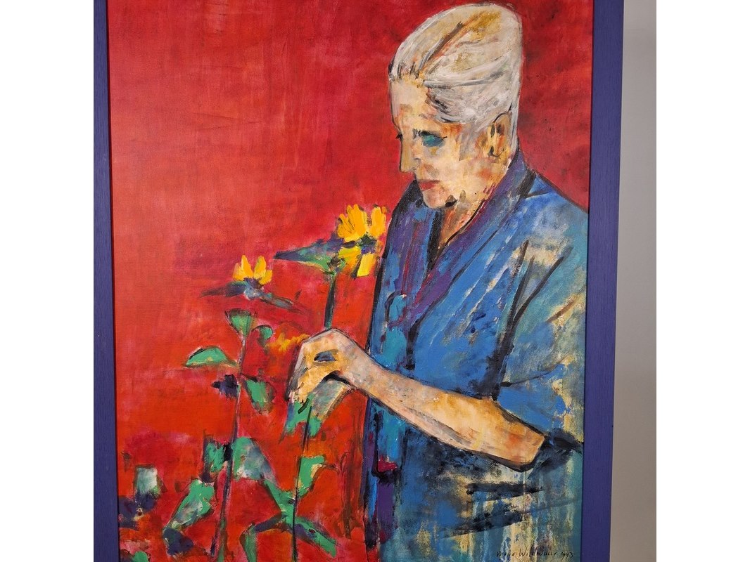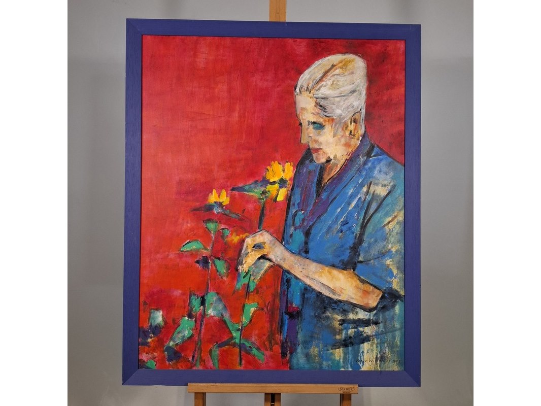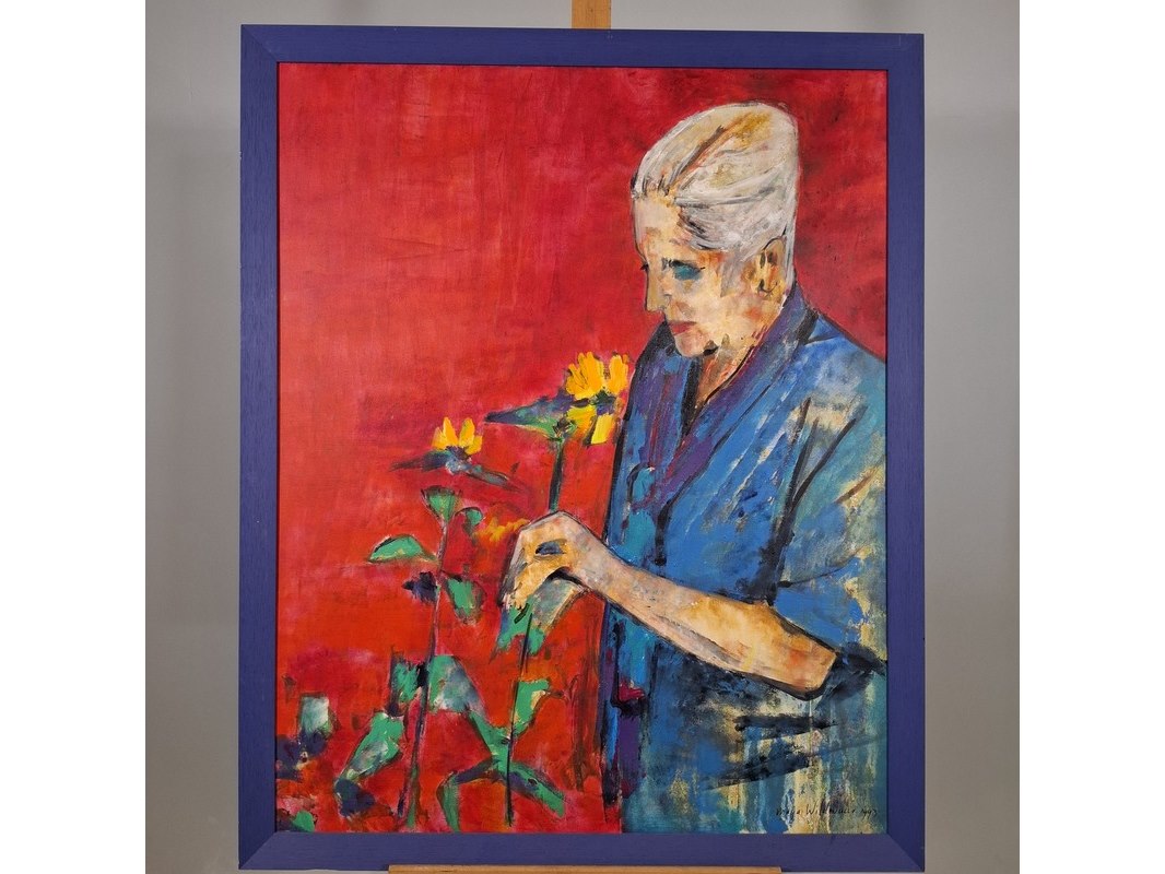 Merk: Maya Wildevuur Product: Acryl schilderij op doek Afmeting: hxb ca. 107x87 cm BouwJaar: 1993