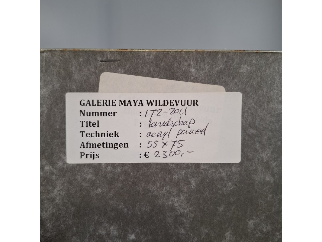 Merk: Maya Wildevuur Product: Acryl schilderij op paneel Afmeting: hxb ca. 57x77 cm BouwJaar: 1997