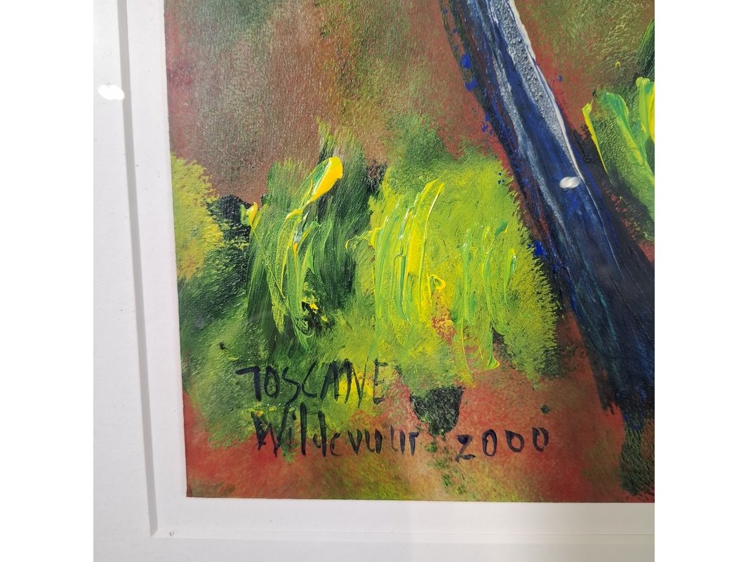 Merk: Maya Wildevuur Product: Acryl schilderij Afmeting: hxb ca. 76x95 cm BouwJaar: 2000