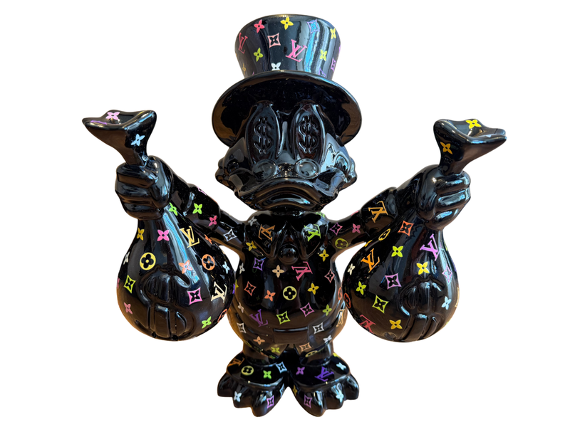 Merk: Lior24 Product: Dagobert Duck sculptuur Materiaal: Resin Afmeting: 42x35cm Conditie: Nieuw Specificaties: Dagobert Duck beeld met Louis Vuitton print