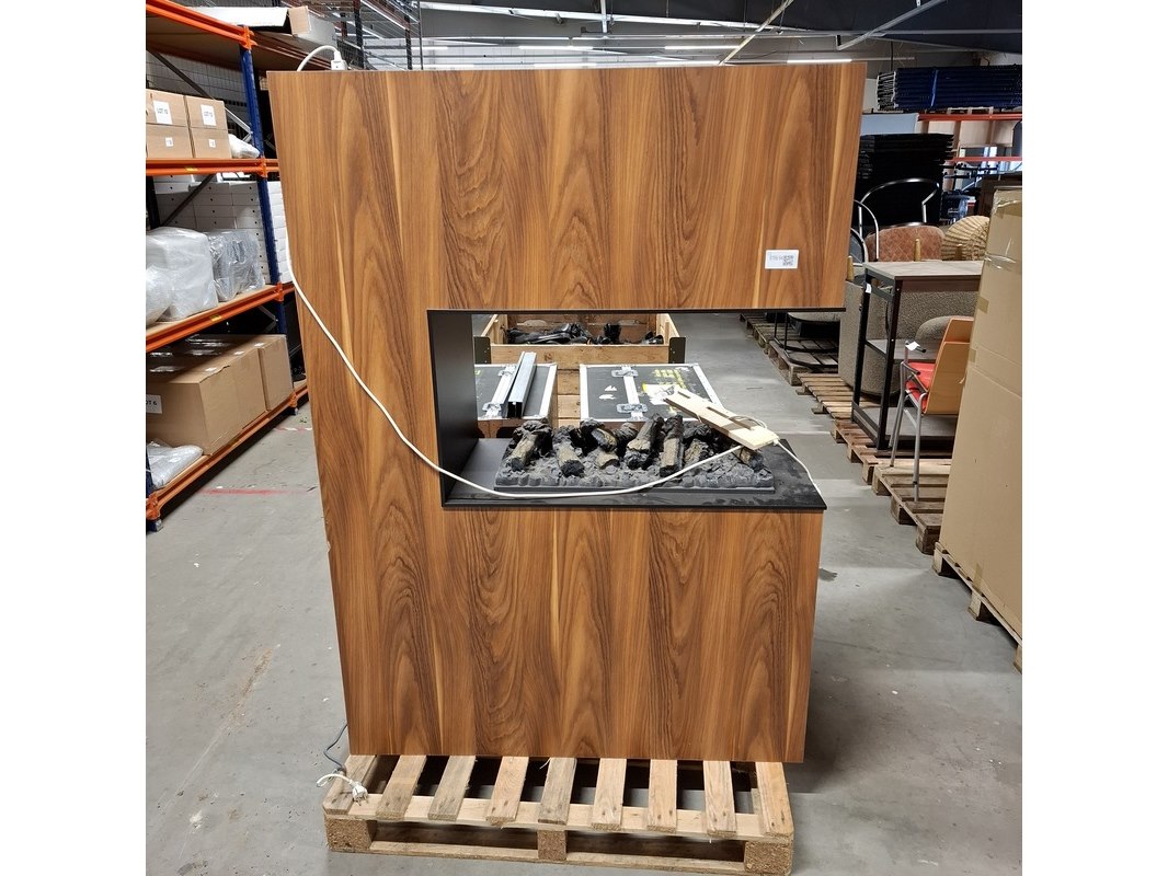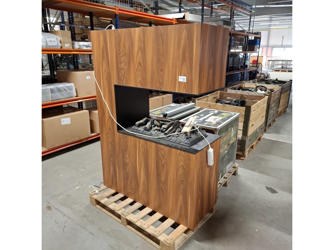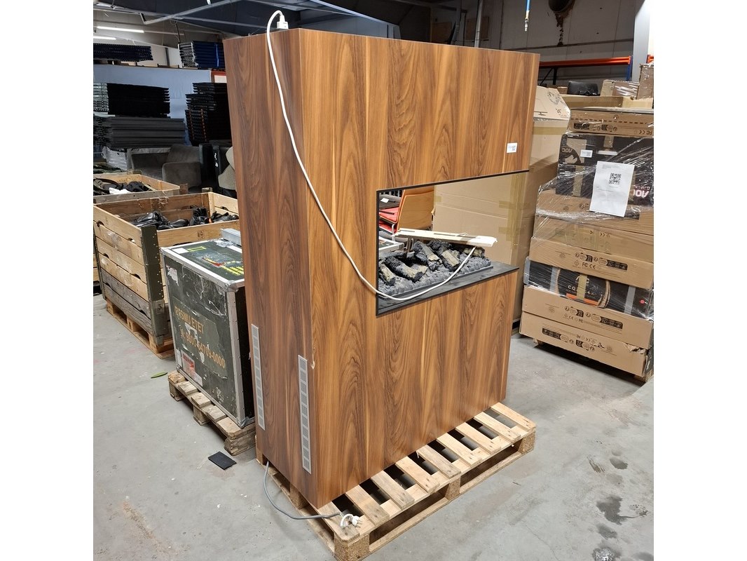 Product: Sfeerhaard elektrisch Kleur: Bruin Materiaal: Hout Afmeting: Lxbxh ca. 126x51x176cm Conditie: Gebruikt Specificaties: Volgens opgave werkend