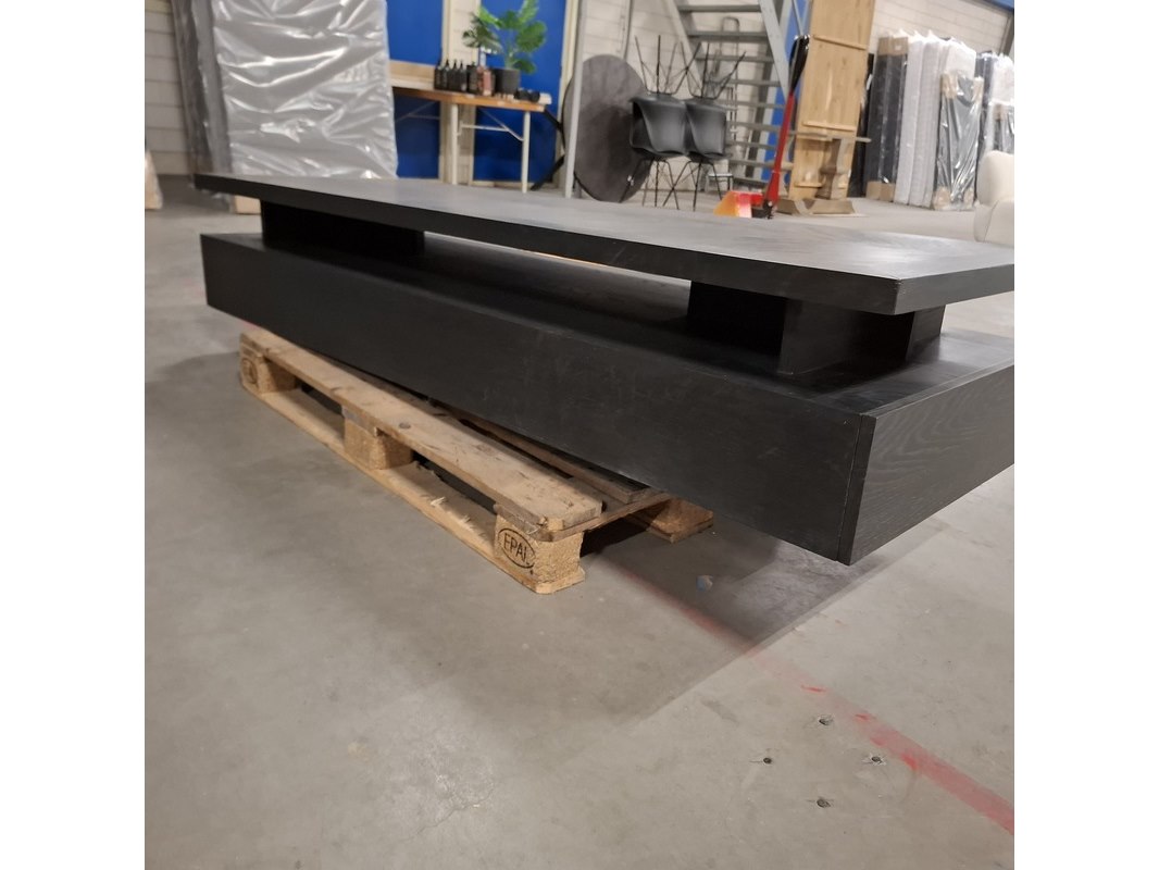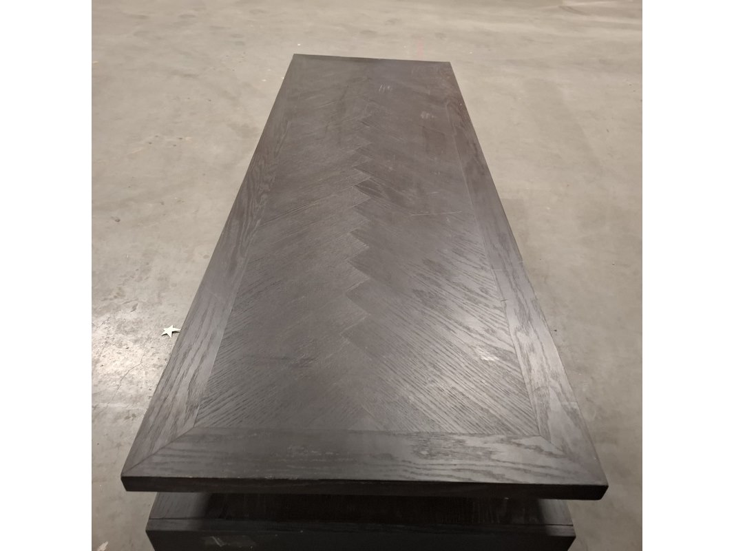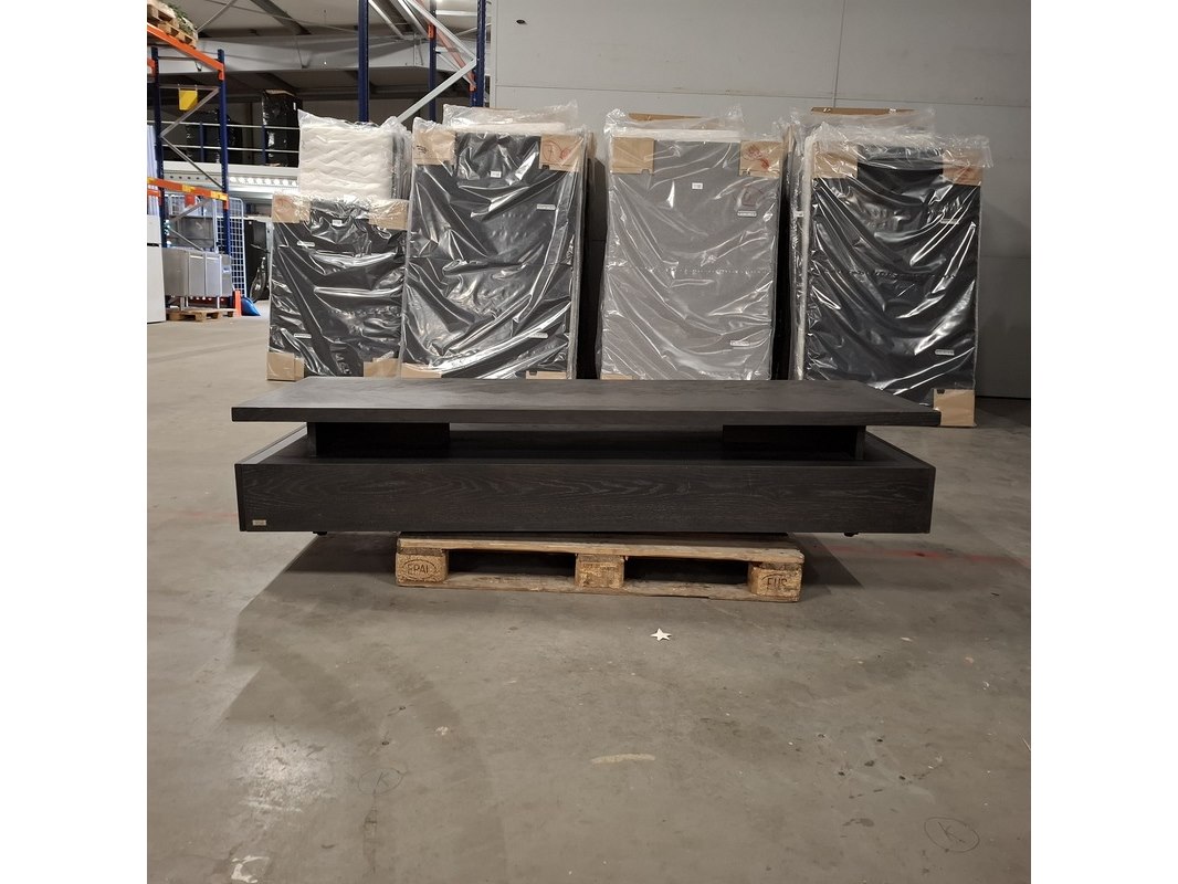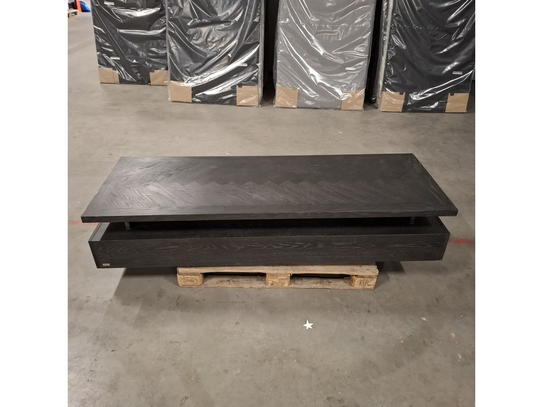 Merk: Rivièra Maison Product: Salontafel Kleur: Zwart Materiaal: Hout Specificaties: Afmetingen ca.: Lengte: 200cm Hoogte: 37cm Breedte: 70cm Vorm: Rechthoek