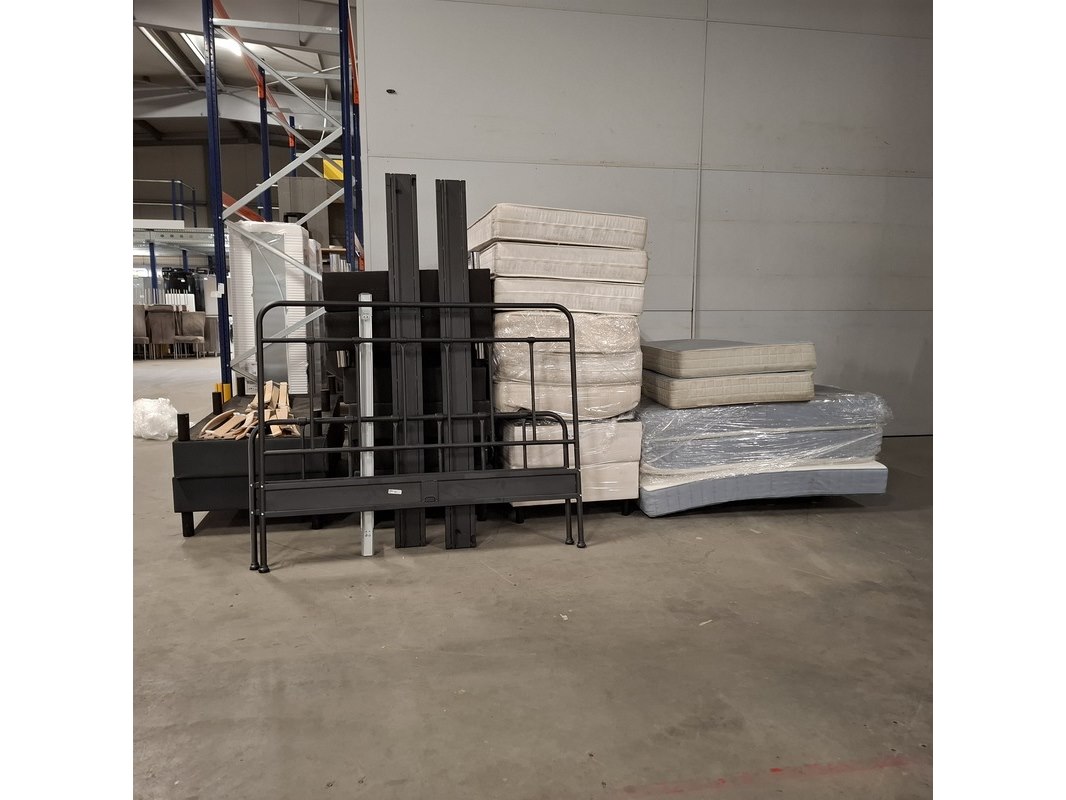 Merk: Rivièra Maison Product: Bedbodem inclusief matras Specificaties: Breedte: 80 en 90cm Lengte: 200cm inclusief 8x matras 90 cm en 3x matras 160 cm 1x metalen bed Ikea 160 cm breed