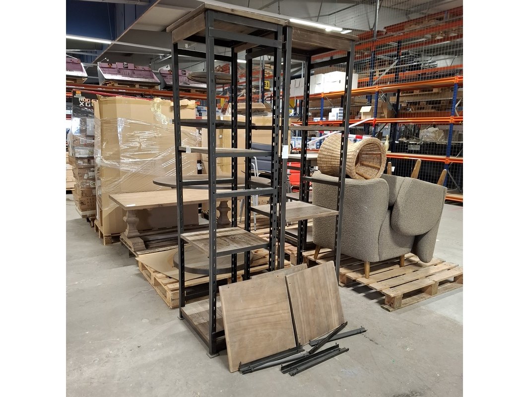 Merk: Rivièra Maison Product: Open kast Materiaal: Hout / Metaal Afmeting: Lxbxh ca. 60x50x200cm