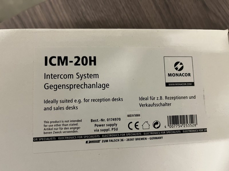 Merk: Monacor Product: Intercom systeem Conditie: Nieuw Specificaties: 3x Intercomsysteem bestaande uit een tafelmicrofoon en een bekabelde oproeppost.