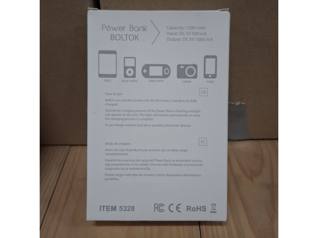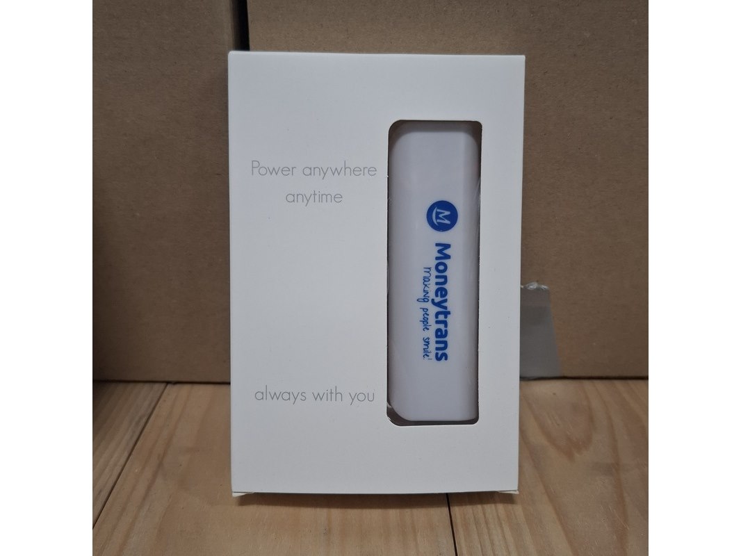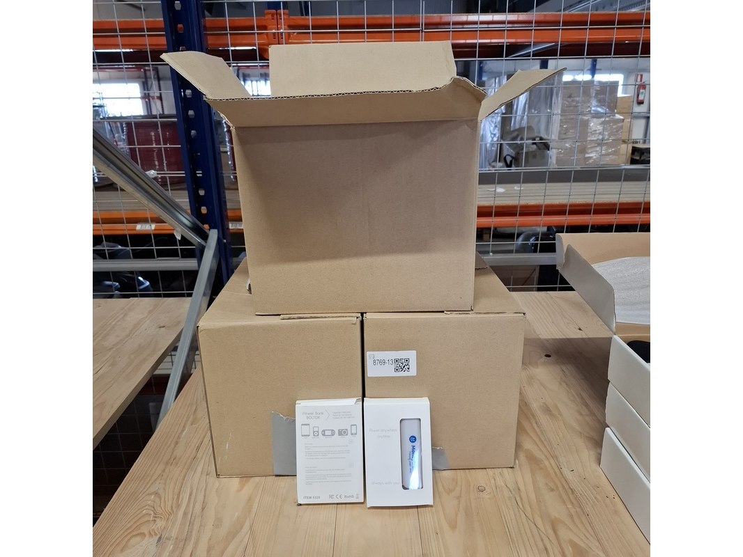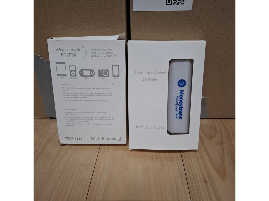 Product: Powerbank Kleur: Wit Afmeting: 1200Mah Conditie: Nieuw Specificaties: Ca. 140x powerbank. Voorzien van reclame aan 1 zijde.