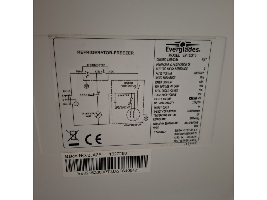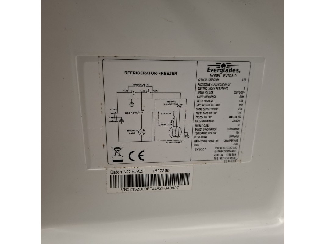 Merk: Everglades Product: Koelkast met vriesvak Kleur: Wit Conditie: Gebruikt Specificaties: Zie foto's voor specificaties