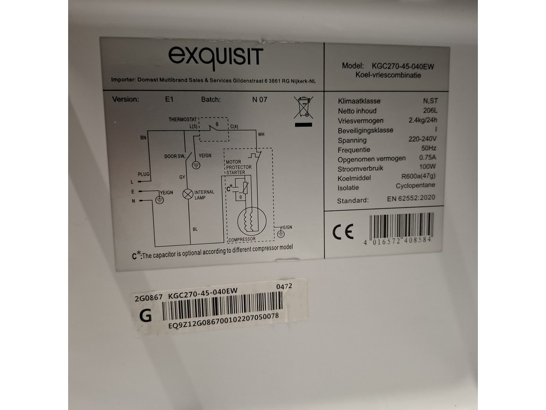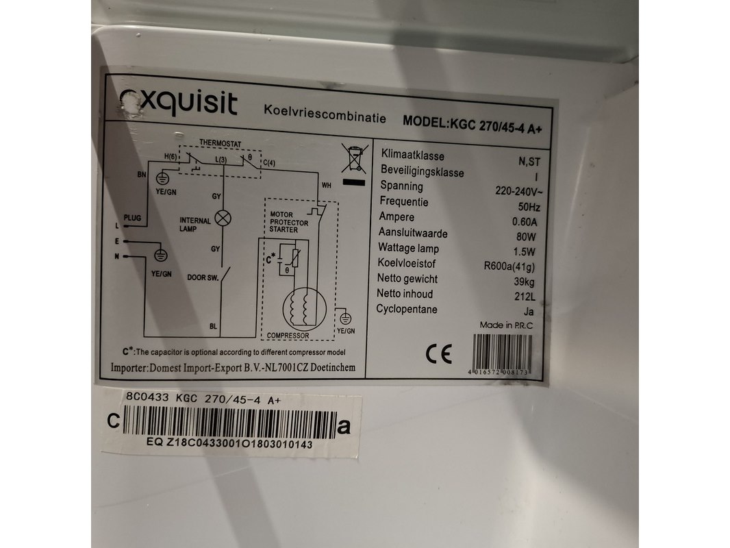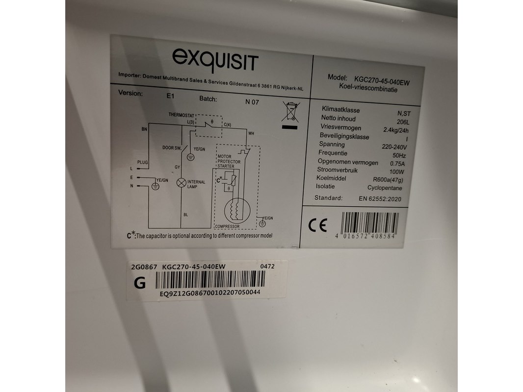 Merk: Exquisit Product: Koelkast met vriesvak Kleur: Wit Conditie: Gebruikt Specificaties: 2x KGC270-45-040EW 1x KGC 270/45-4 A+ Zie afbeeldingen voor verdere specificaties