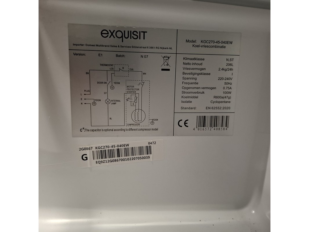 Merk: Exquisit Product: Koelkast met vriesvak Kleur: Wit Conditie: Gebruikt Specificaties: Zie afbeelding voor specificaties