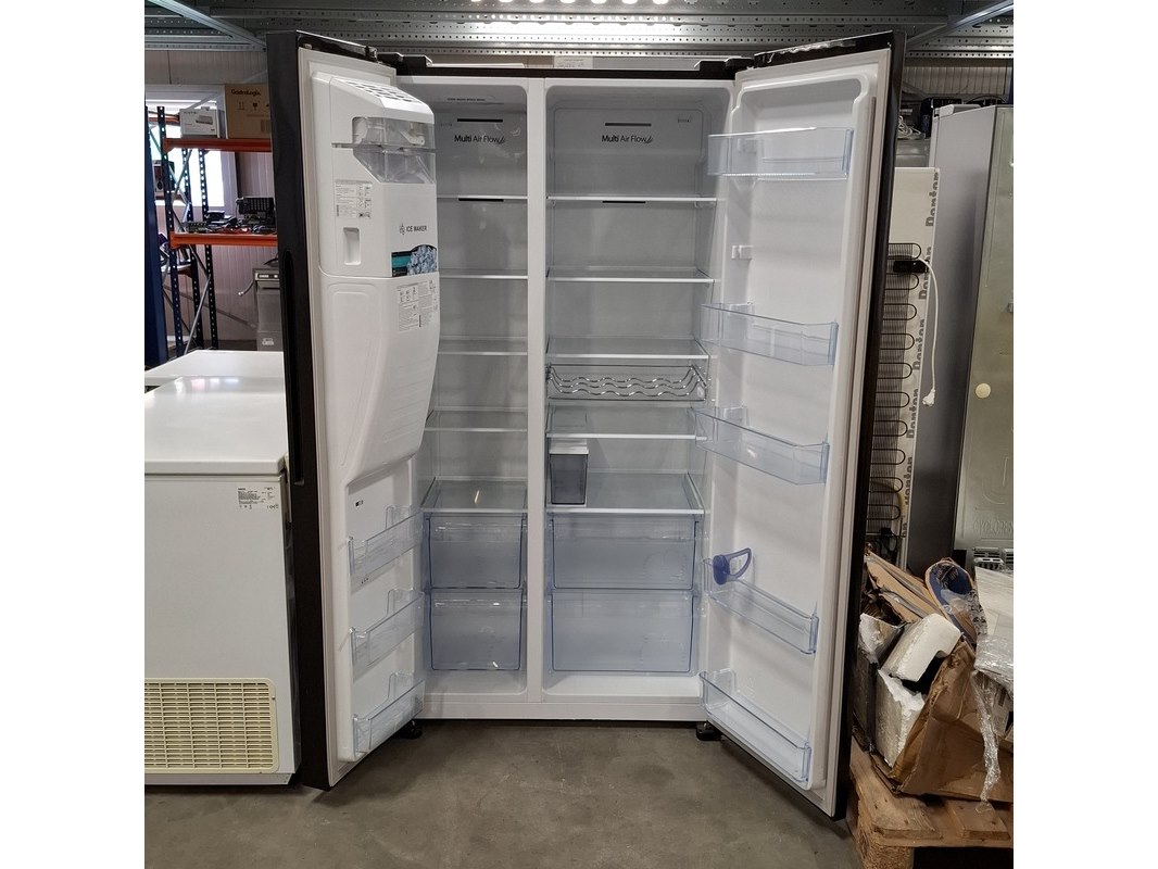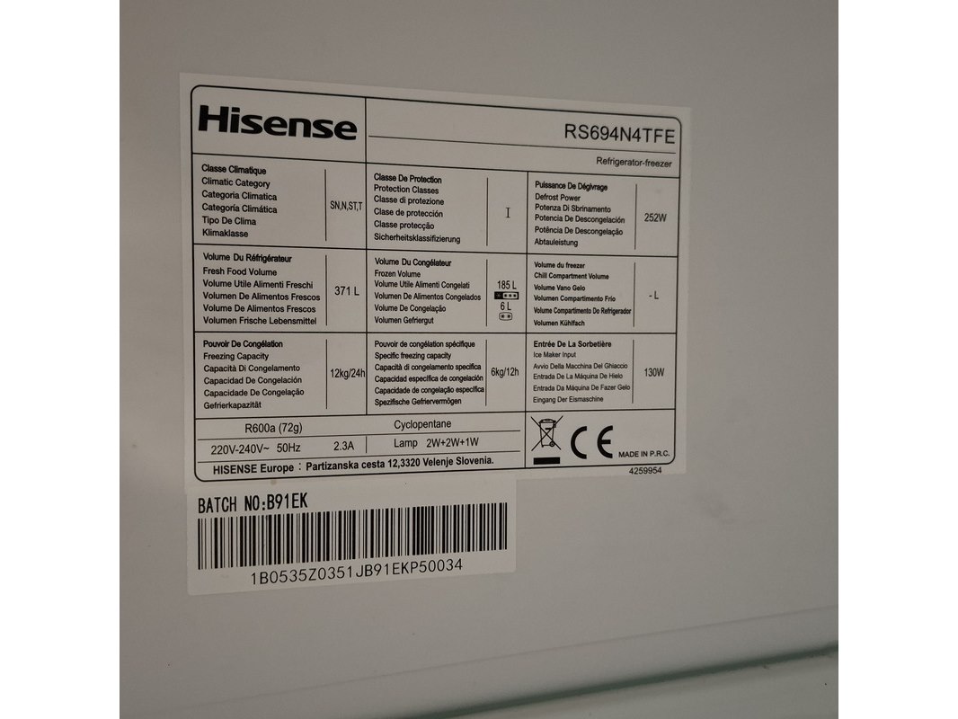 Merk: Hisense Product: Amerikaanse koelkast Kleur: Zwart Conditie: Gebruikt Specificaties: Nette Amerikaanse koelkast A+++ met water/ijs/crunshed functie Water/ijs/crunshed gedeelte niet kunnen testen Koeltechnisch goed getest! literinhoud koeling 371 liter literinhoud vriezer 185 liter