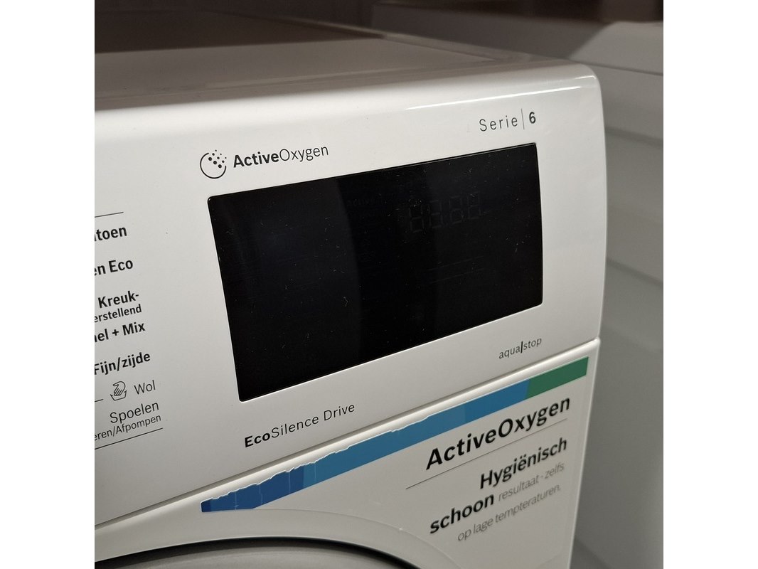 Merk: Bosch Product: Wasmachine Kleur: Wit Conditie: Gebruikt Specificaties: Hele nette wasautomaat 8.0 KG Active Oxygen functie, ECO Silence Drive Werkend getest!