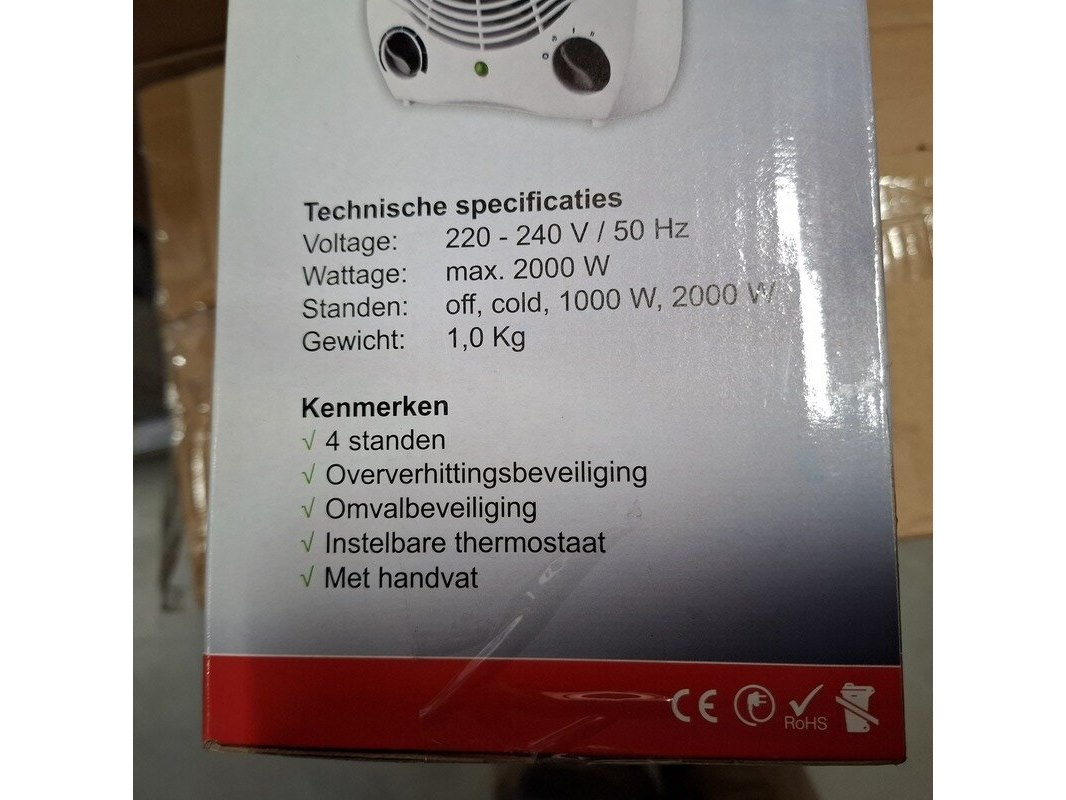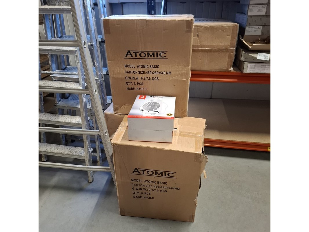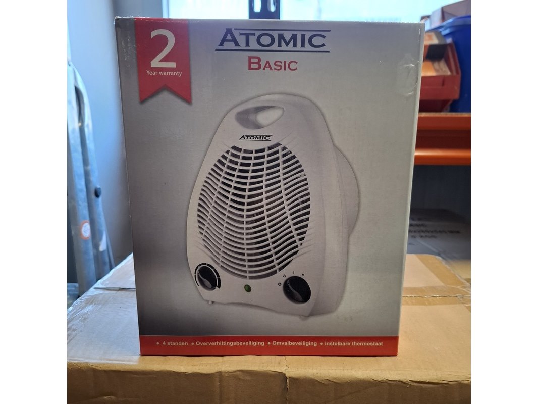 Merk: Atomic Product: Elektrische kachel Kleur: Wit Materiaal: Plastic Conditie: Nieuw Specificaties: Voltage: 220 - 240V / 50Hz Power: max. 2000W