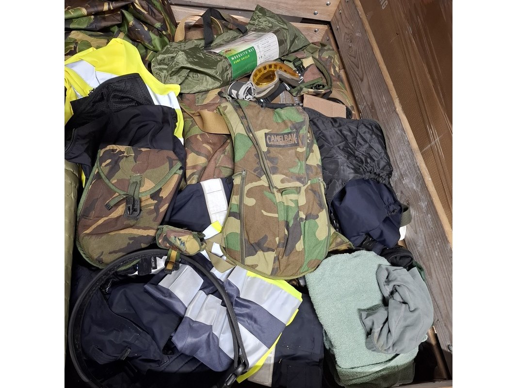 Merk: KPU / KL / Woodland Product: Persoonlijke uitrusting en kleding defensie Materiaal: Van alles Conditie: Gebruikt Specificaties: Inclusief palletkist