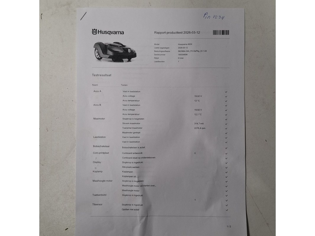 Merk: Husqvarna Product: Robotmaaier Kleur: Donkergrijs / Antraciet BouwJaar: 2019 Conditie: Gebruikt Specificaties: 450X robotmaaier refurbished: - 5000m2 maaicapaciteit - Nieuwe originele accu's - Nieuwe hoofdprintplaat - Gereviseerde wielmotoren - Bedienbaar met Autoconnect App - Beurt gehad - Testrapport aanwezig - Direct inzetbaar