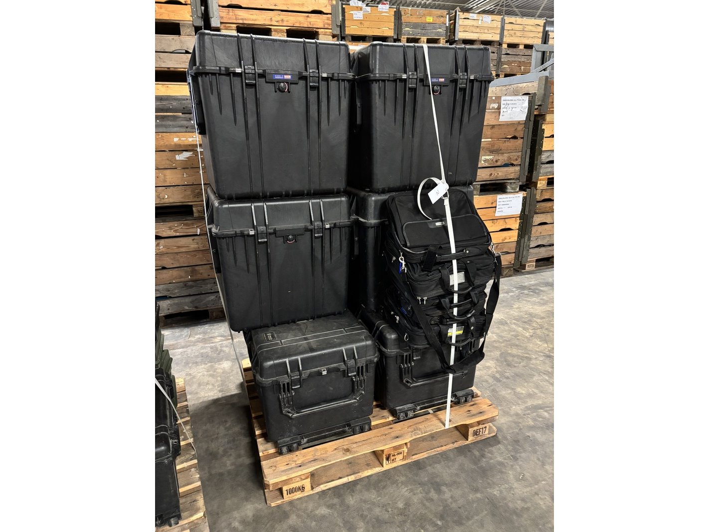 Merk: TGM/Pelican/Targus Product: Partij kunststof kisten en laptoptassen Afmeting: Diverse maten, uitvoeringen Conditie: gebruikt Specificaties: Partij kunststofkisten en laptoptassen op een pallet. Let op: pallets, palletranden en/of andere emballage is geen onderdeel van de kavel.