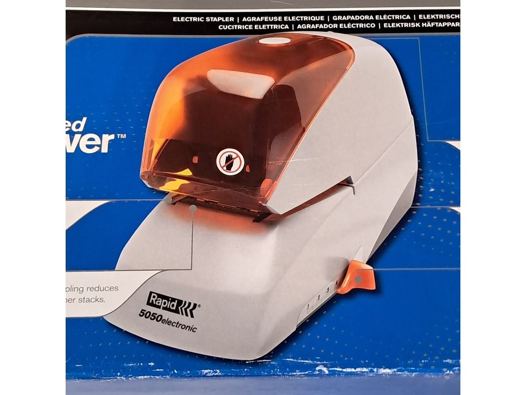 Elektrische nietmachine en 2x laptop stander, rapid/kensington, 5050e/easy riser