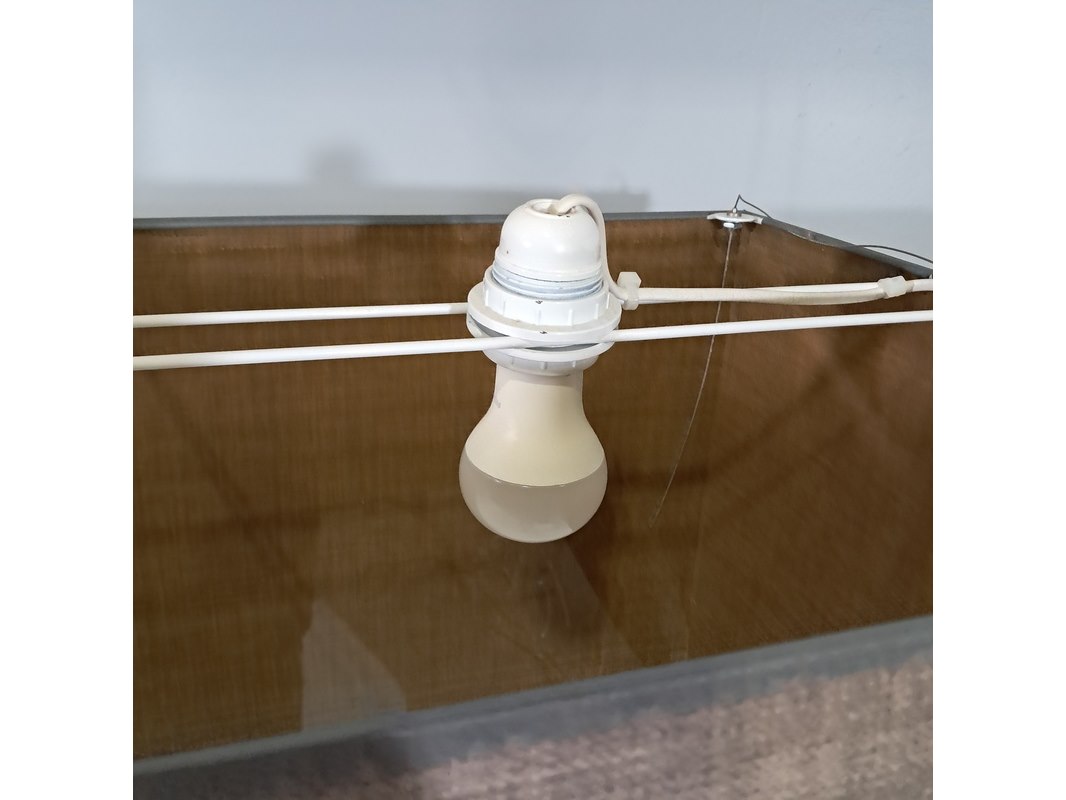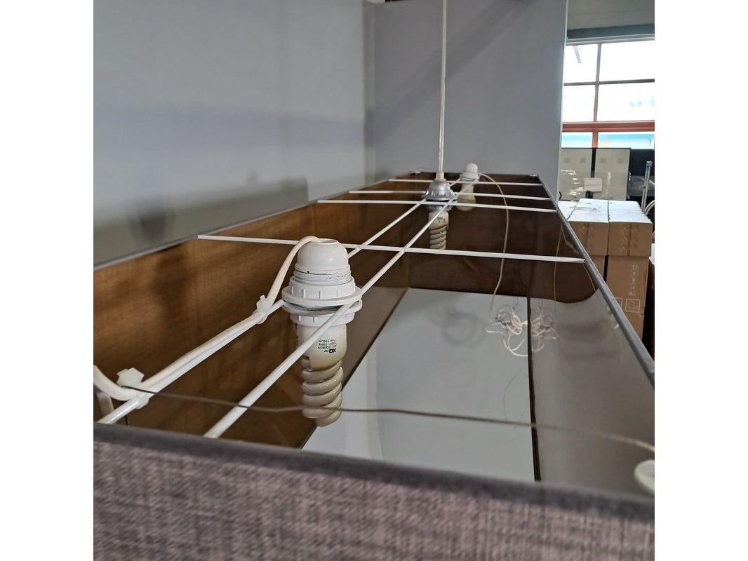 Merk: Mavva Product: Rechthoekige hanglamp Afmeting: hxbxd ca. 40x180x40 cm Conditie: gebruikt Specificaties: Technische staat, werking en compleetheid onbekend.