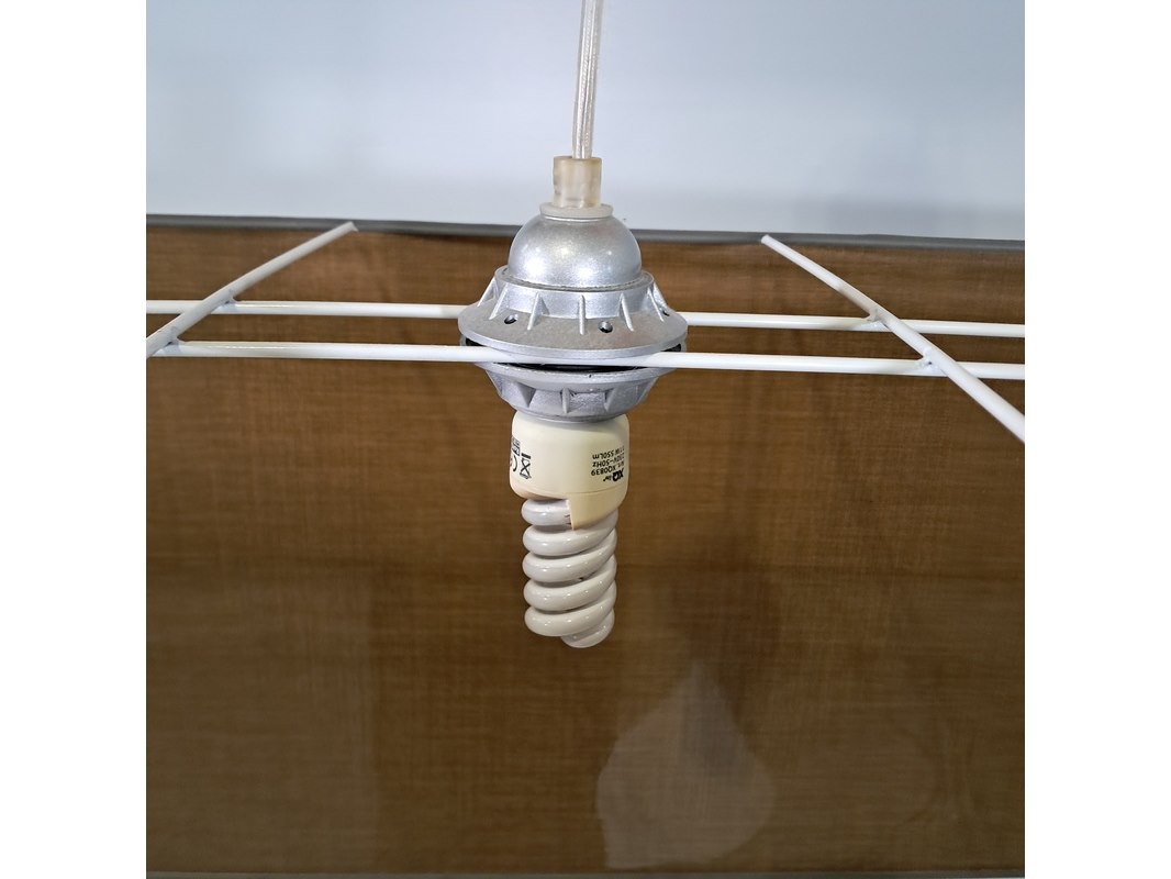 Merk: Mavva Product: Rechthoekige hanglamp Afmeting: hxbxd ca. 40x180x40 cm Conditie: gebruikt Specificaties: Technische staat, werking en compleetheid onbekend.