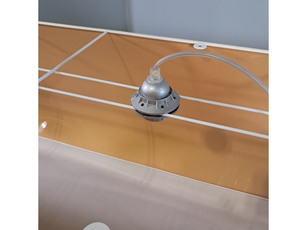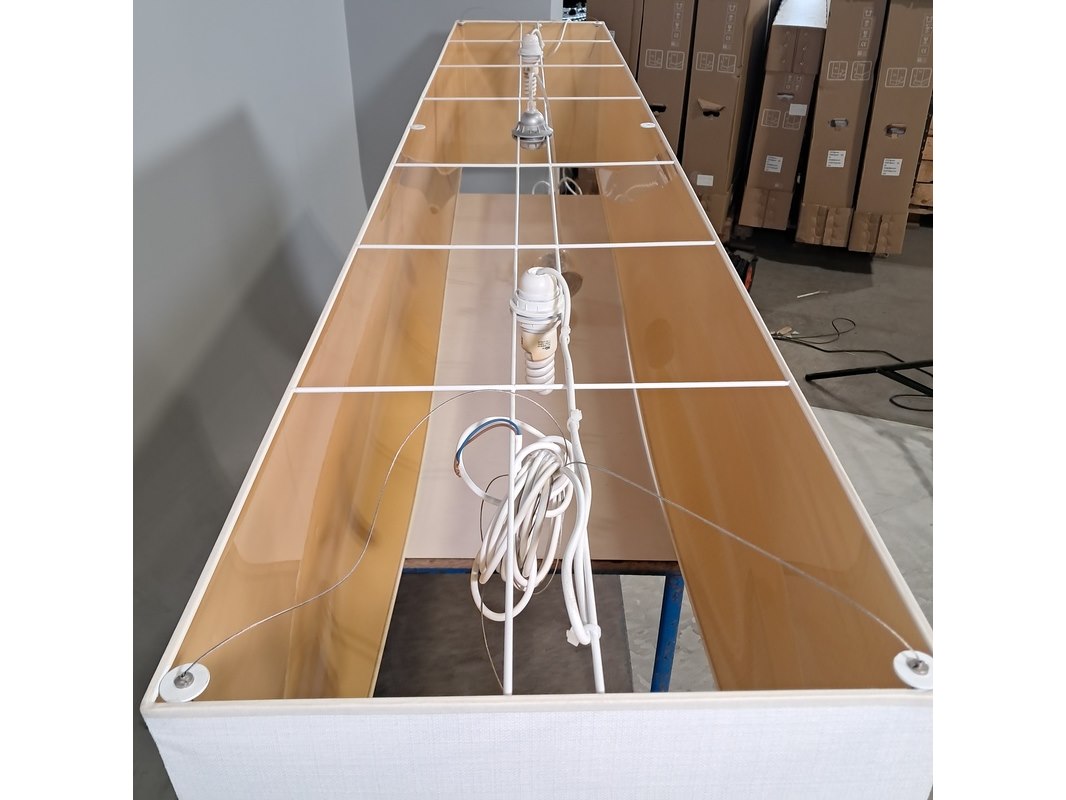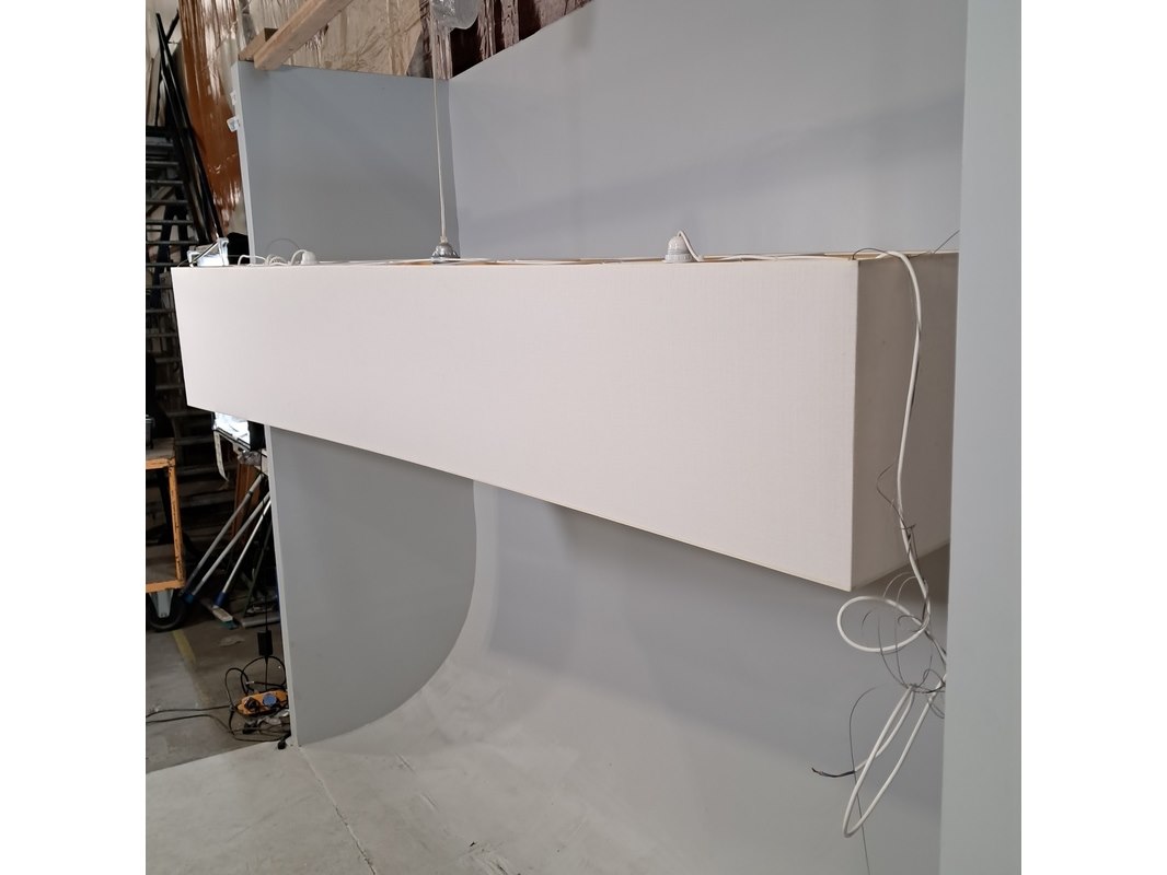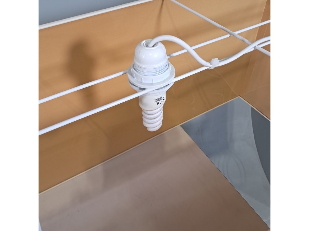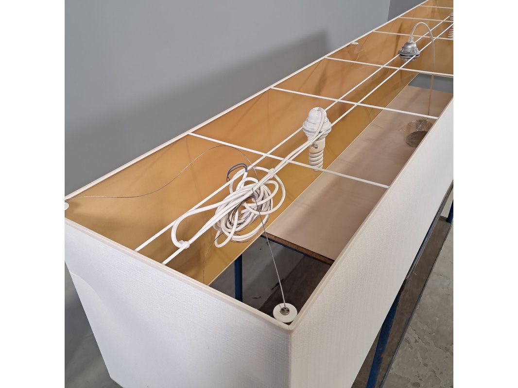 Merk: Mavva Product: Rechthoekige hanglamp Afmeting: hxbxd ca. 40x220x40 cm Conditie: gebruikt Specificaties: Technische staat, werking en compleetheid onbekend.