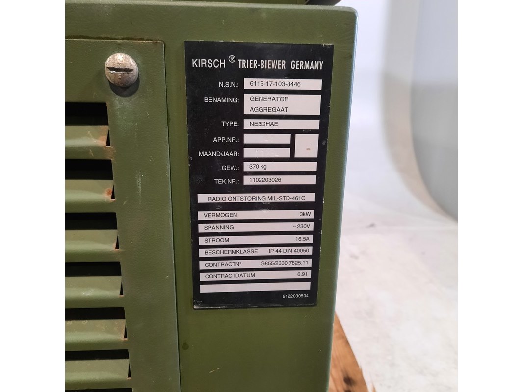 Merk: Kirsch Product: Aggregaat Afmeting: Lxbxh ca. 143x66x85 cm. BouwJaar: 1994 Conditie: Gebruikt Specificaties: Gewicht ca. 370 Kg. 3 kW 16.5A Afgelezen urenstand ca: 57 Exclusief sleutel Technische staat en compleetheid onbekend.