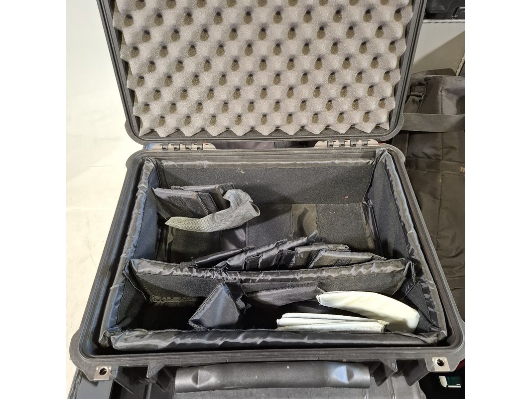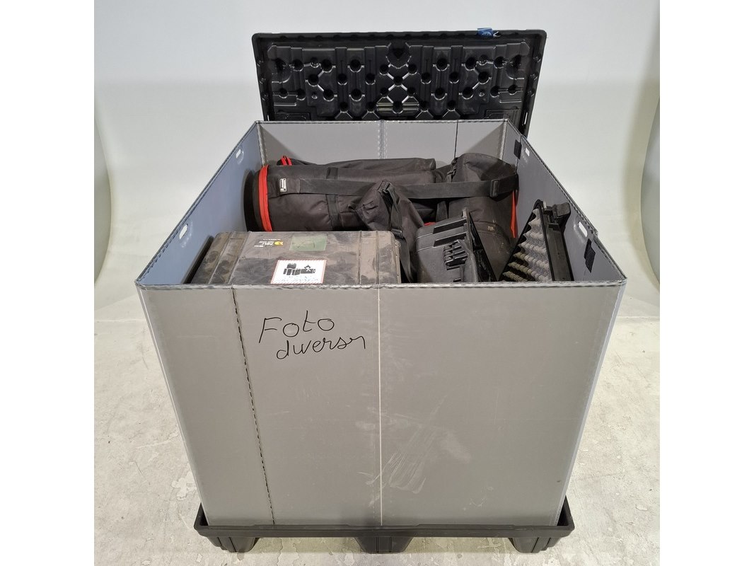 Merk: o.a Peli Product: Transportkoffers en tassen Afmeting: Diverse maten Conditie: gebruikt Specificaties: Bestaande uit koffers en tassen Technische staat en compleetheid onbekend. Exclusief palletkist